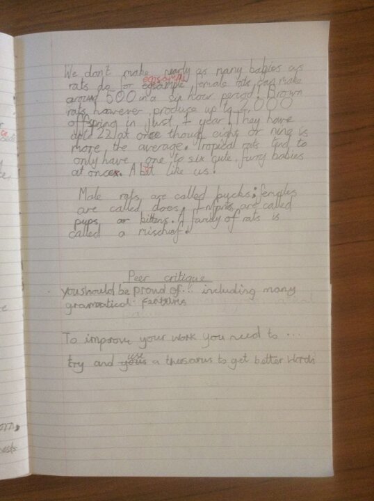 Since our new class text is called, ‘I was a Rat!’, we’ve learned how to write a non-chronological report about Rats , using factual information, RAG words and many grammatical features. I wonder if there is any information in our report that surprises you?
