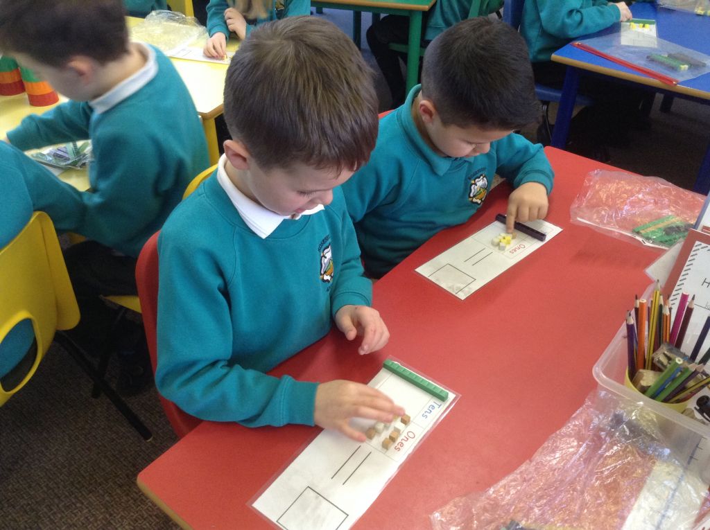 In maths we have been learning how to partition numbers into tens and ones. We have used the deans apparatus to find out how many tens and how many ones are in a two digit number.
