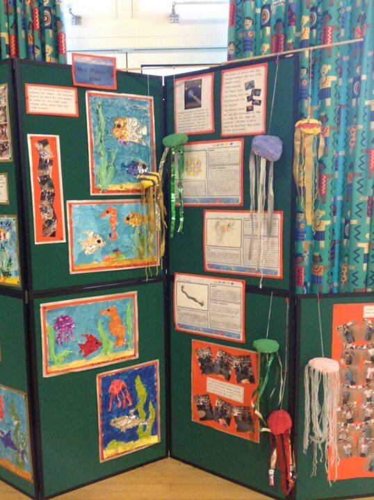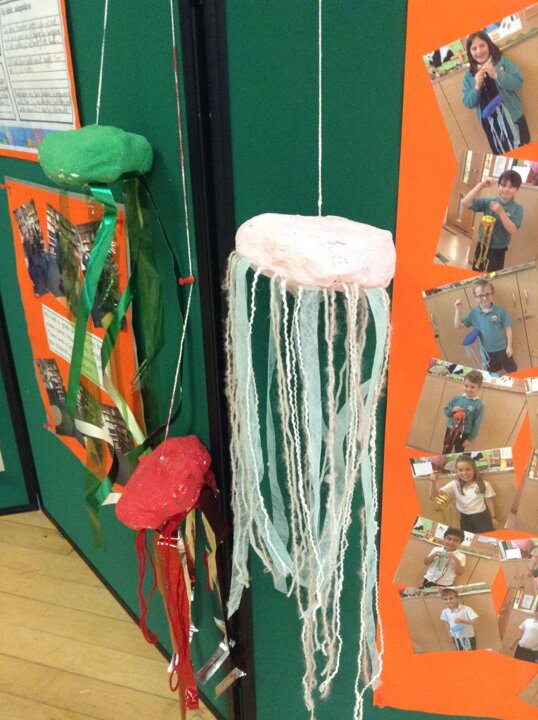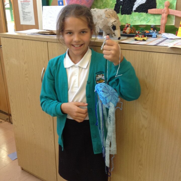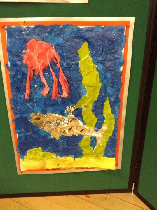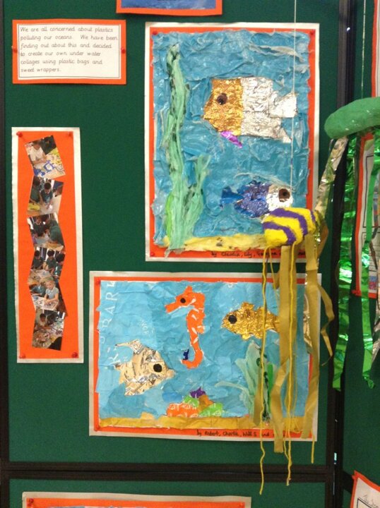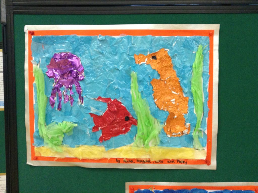 We are all concerned about plastics polluting our oceans. We have been finding out about this and decided to create our own under water collages using plastic bags and sweet wrappers.