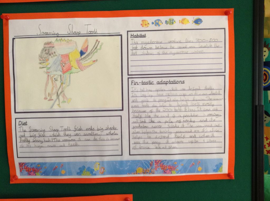 We used this information to help us create our own ‘deep sea creatures’. We then wrote a report all about how they adapt to their environment.