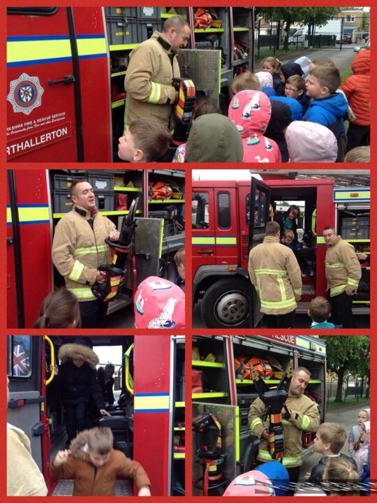 Today, we were visited by some fire officers from Northallerton. They told us what to do incase of a fire, and taught us how to stay safe. We even sat in their fire engine!