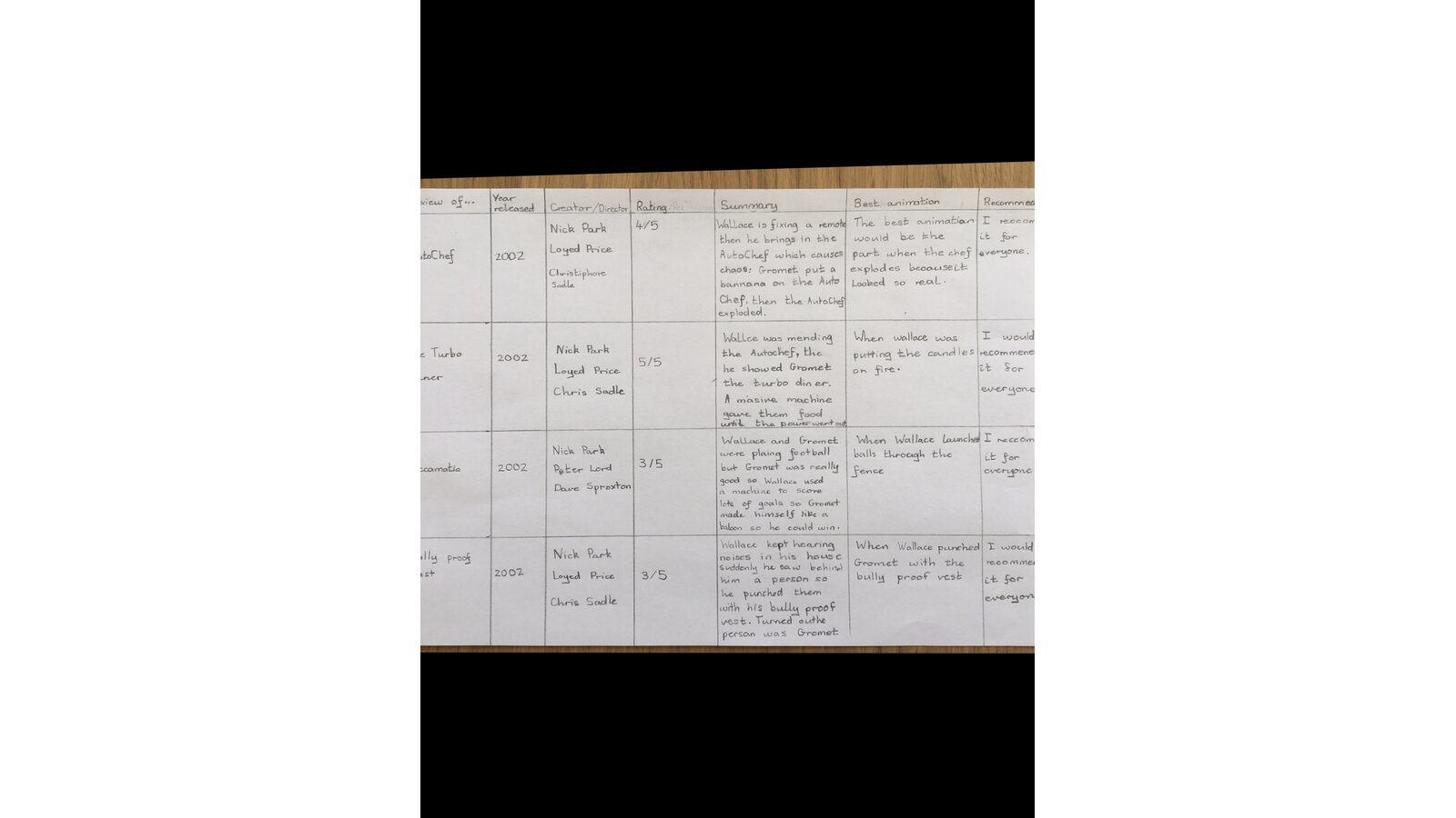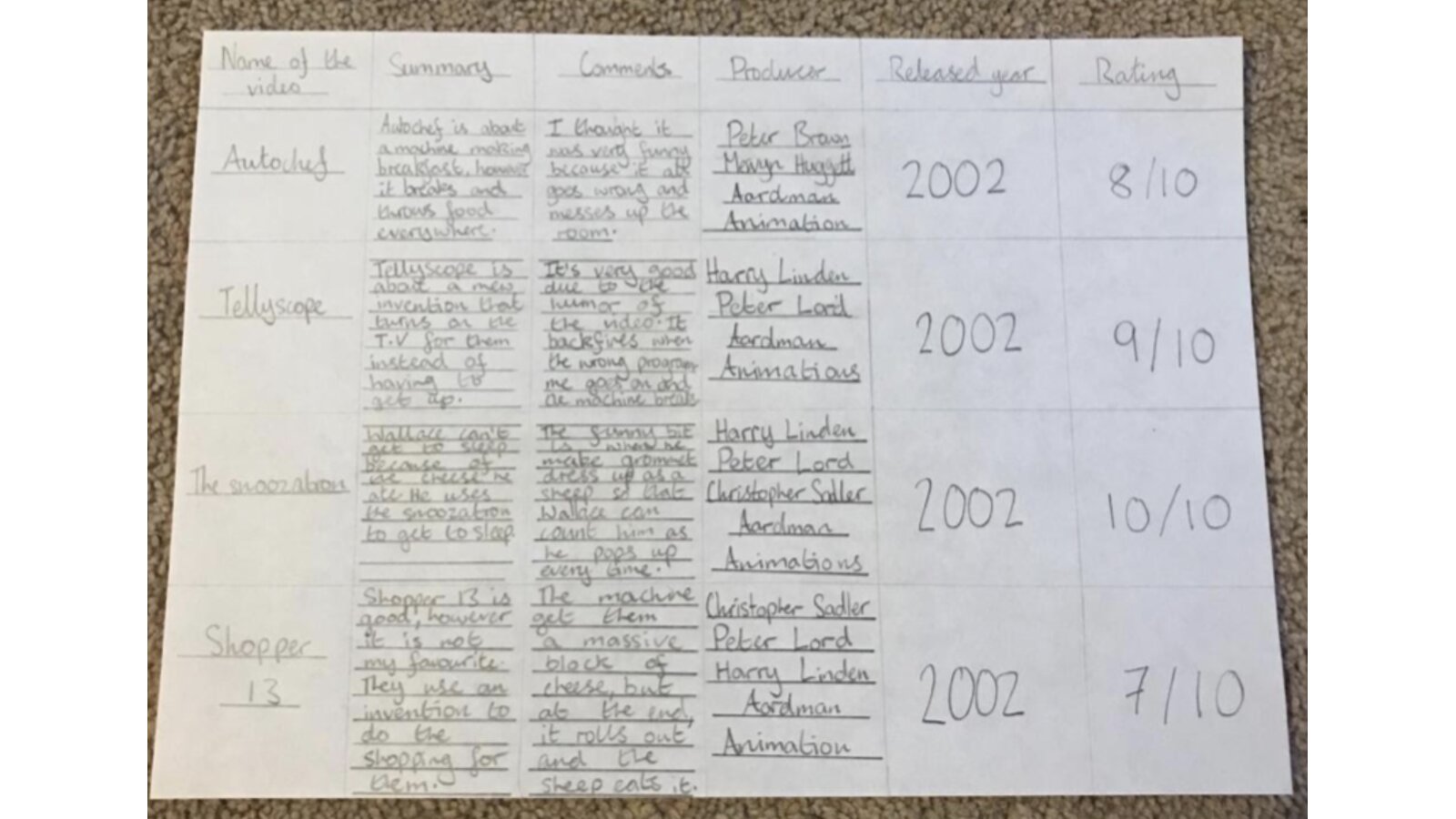 I think we have some children in our class who could be serious contenders to rival the creative skills of Nick Parkes and the amazing animation team at Aardman Studios! What a week we have had, I have again been impressed by your resourcefulness, imaginations and the originality you have shown. The artistic skills you have demonstrated has astounded me! Well done everyone – as you know, I am incredibly proud of you! Also a MASSIVE thank you to all those adults at home that embraced animation this week and supported their children’s learning! Unfortunately I am unable to put everyone’s animation creations on our blog, but the children have shared them this week on our class Teams page and I have had the delight in being able to watch every single one – they were brilliant! Please have a look at some of our storyboard creations, film reviews and comic strips below.
