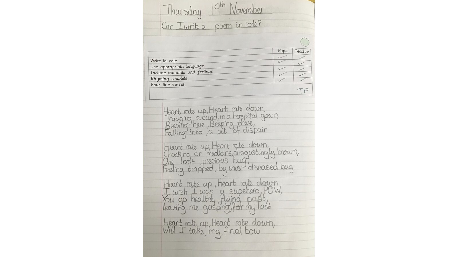 This week, the children have been writing both emails and poetry, in role, for work based on the book 'Pig Heart Boy' by Malorie Blackman. For the emails, they had to think about how the characters were feeling and what they would put in an email to each other. I was impressed by the maturity that the children displayed in their writing! For the poetry, they had to write in rhyming couplets and it had to be written as if by the main character. He could talk about his heart or the girl he had a crush on - again, very mature and impressive!