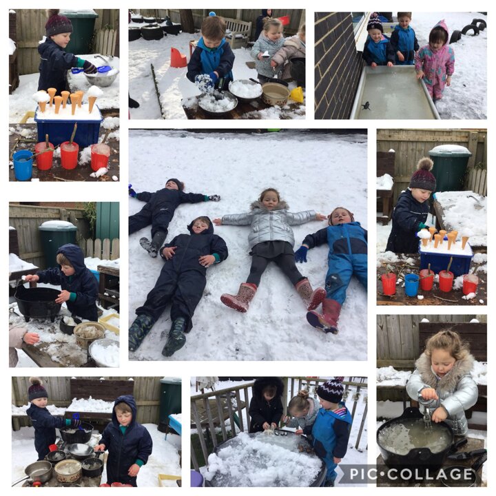 12 February 2021 Nursery 2021 We had snow much fun today. We made snow angels, had animal races in the frozen water tray, built a snowy landscape for the Polar Bears and Penguins (North and South Poles divided of course). We really enjoyed making ice-creams in the mud kitchen. Enjoying the Snow