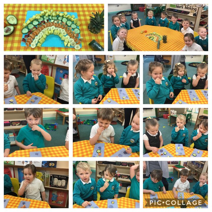 24 February 2021 Nursery 2021 Can you eat a Rainbow? We found out today that yes, you can eat a Rainbow. We really enjoyed trying all of the different coloured fruits. The pineapple was our favourite. Mmmmmm delicious!! Fruit Tasting