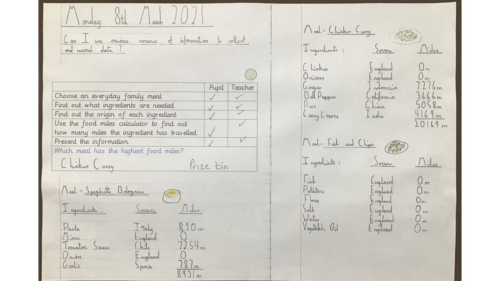 In topic, we began the week looking at how far our food travels to get to our plates.