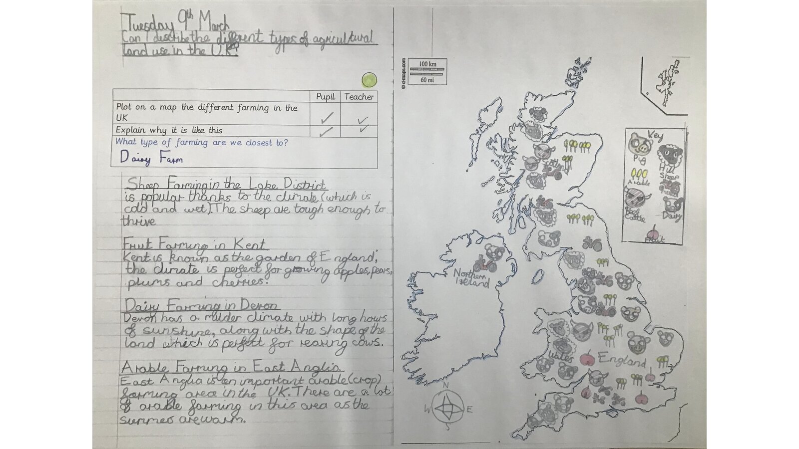 Next, we found out all about farming in the UK. We discussed the types of farming and why it is situated where it is.