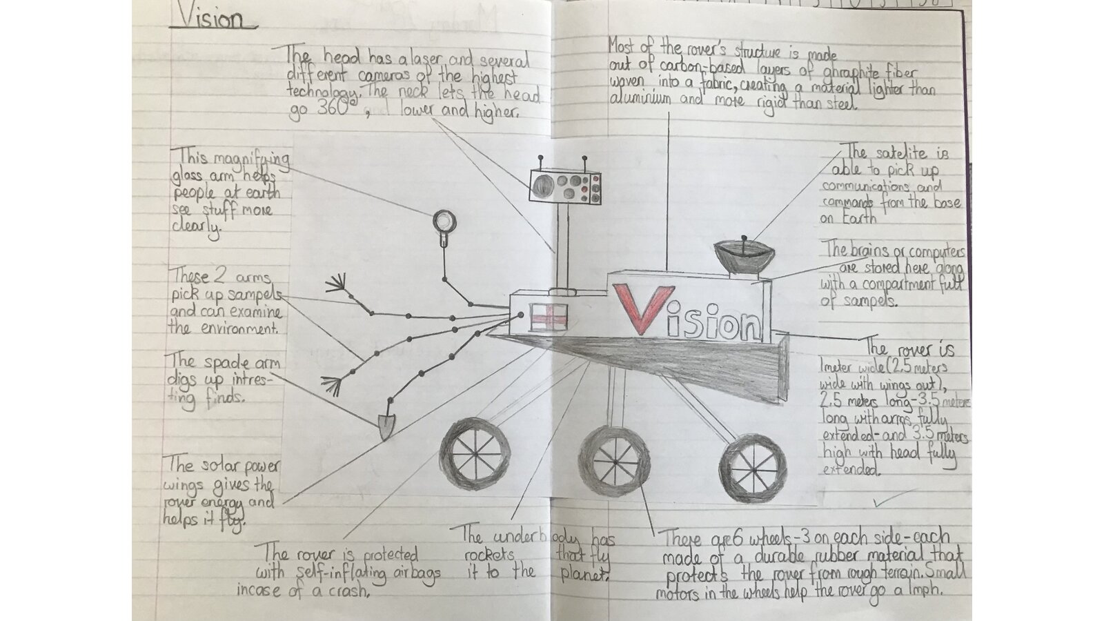 This week the children have researched the planetary rovers, which collect data from space. They used this research to design their own rover. They had to think about what features it would need and what they would be made out of. They found it really interesting!