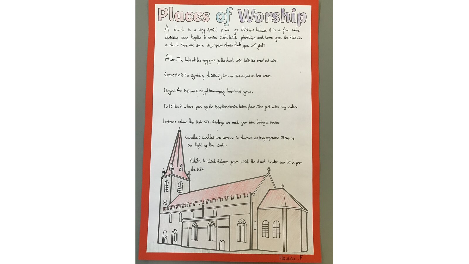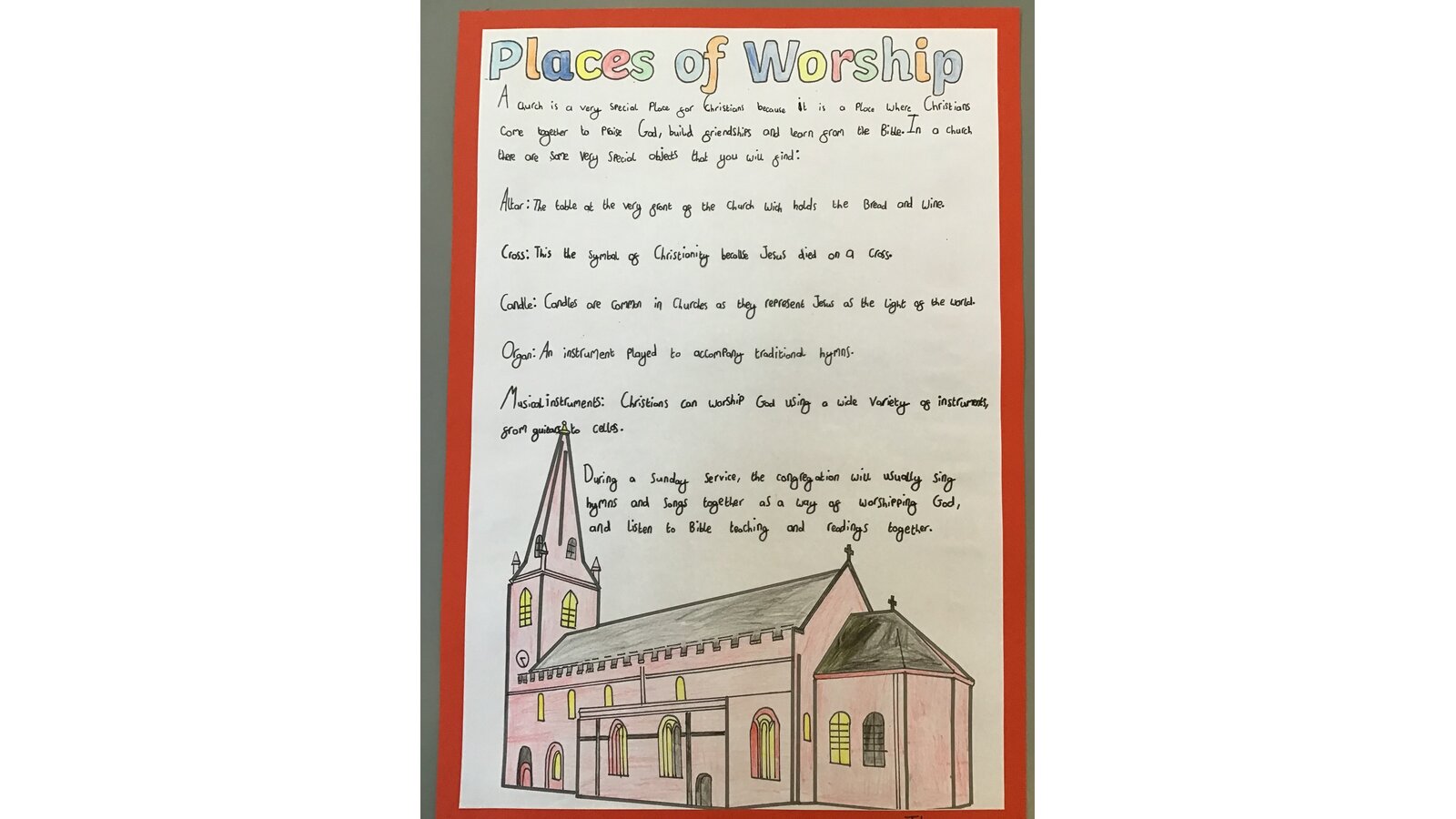 This week we have had Culture Week, where our class have been focusing on Christianity and their places of worship. We started our week off with a superb visit to Christ Church in Great Ayton, where Reverend Peverell talked to about the different parts of the church and Christian beliefs. Back in the classroom, the children have produced writing about the church, made stained-glass windows and have sketched a church with a sunset background. The children have worked incredibly hard all week and the standard of their work has been outstanding. They should all feel very proud as I certainly do.