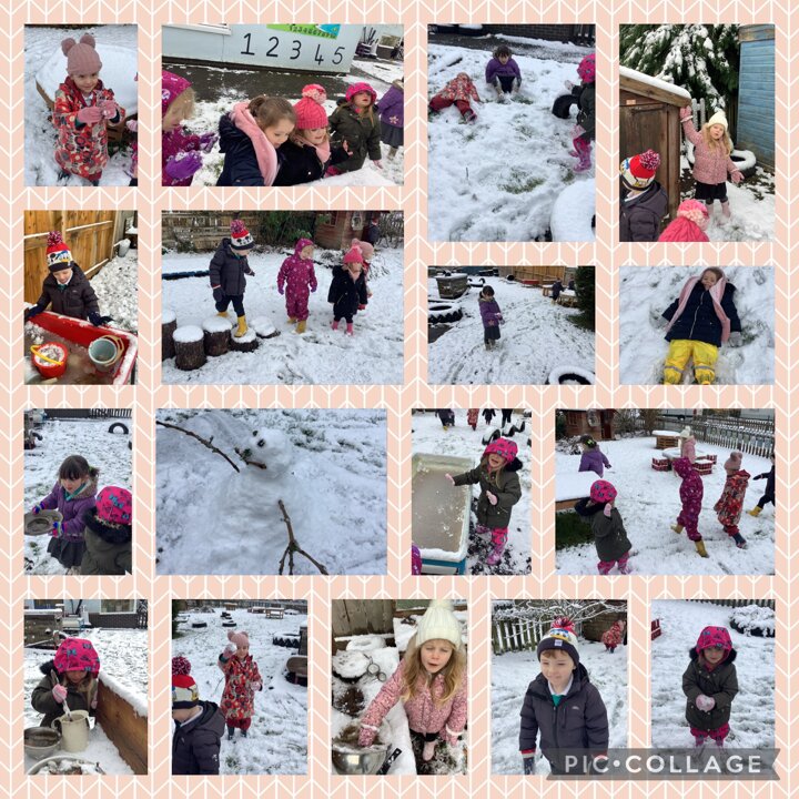 Today we spent the morning in the garden having fun in the snow. We listened to the snow crunching under our feet, we made snow angels and a mini snow man. A lot of our furniture had frozen over. We noticed the water had turned to ice and tried to break through it. To warm back up we enjoyed a nice hot chocolate with our fruit during snack time!