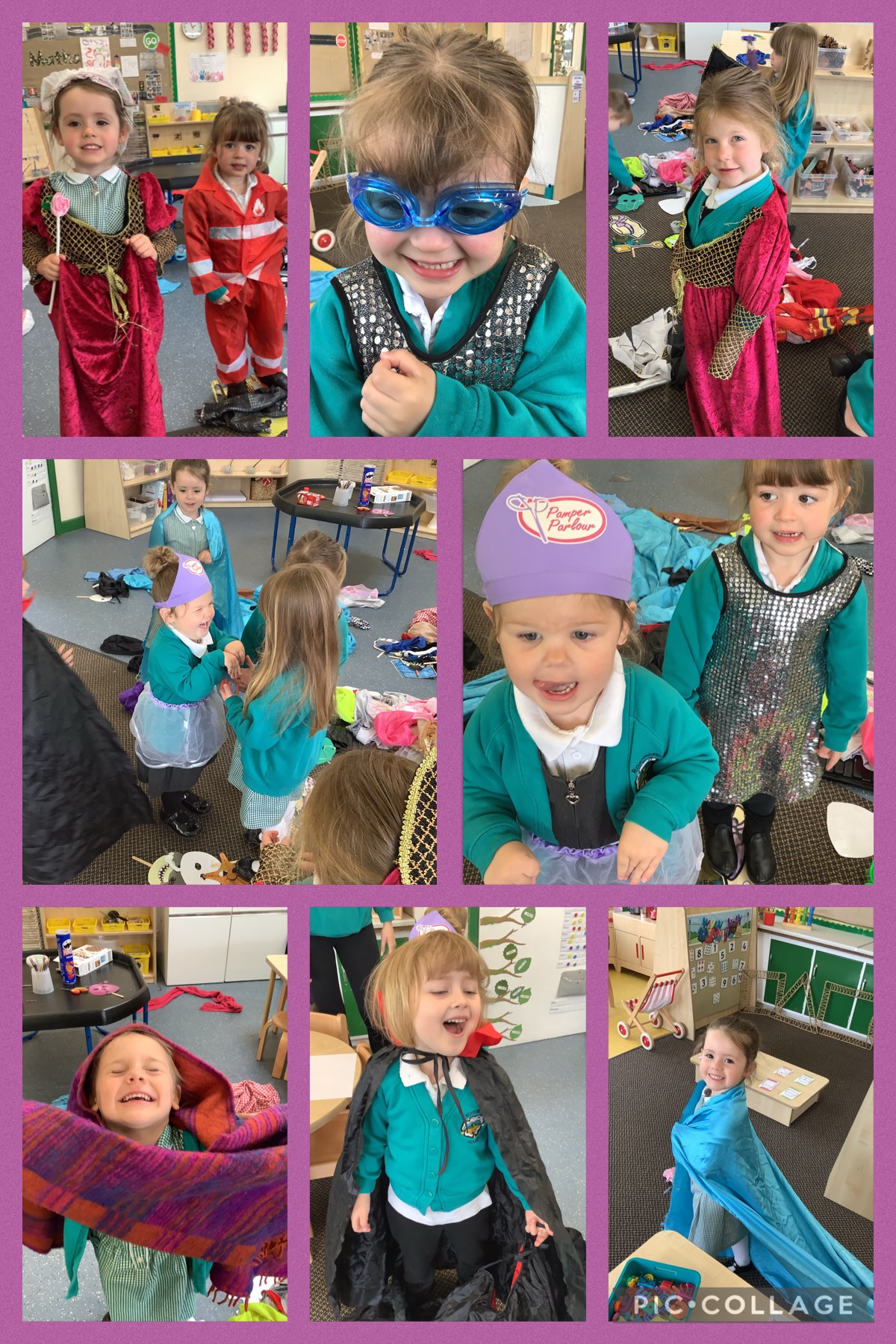 Someone donated a big box of dressing up clothes, so we have spent the week dressing up as different people.