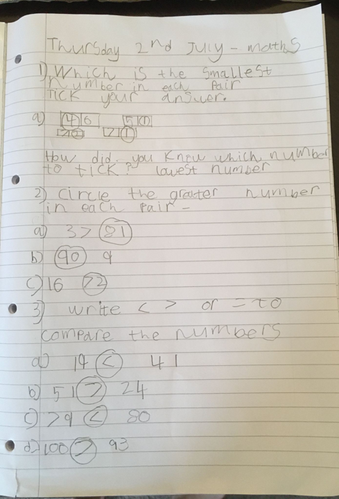 Home learning 29th