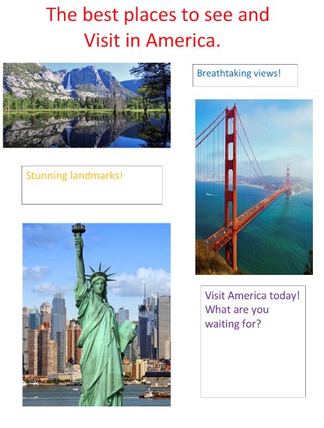 USA travel brochure of physical landmarks