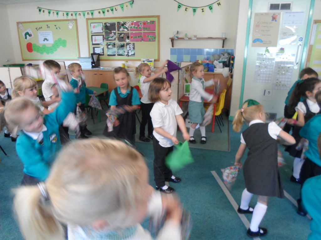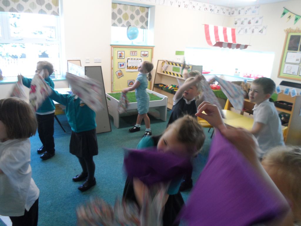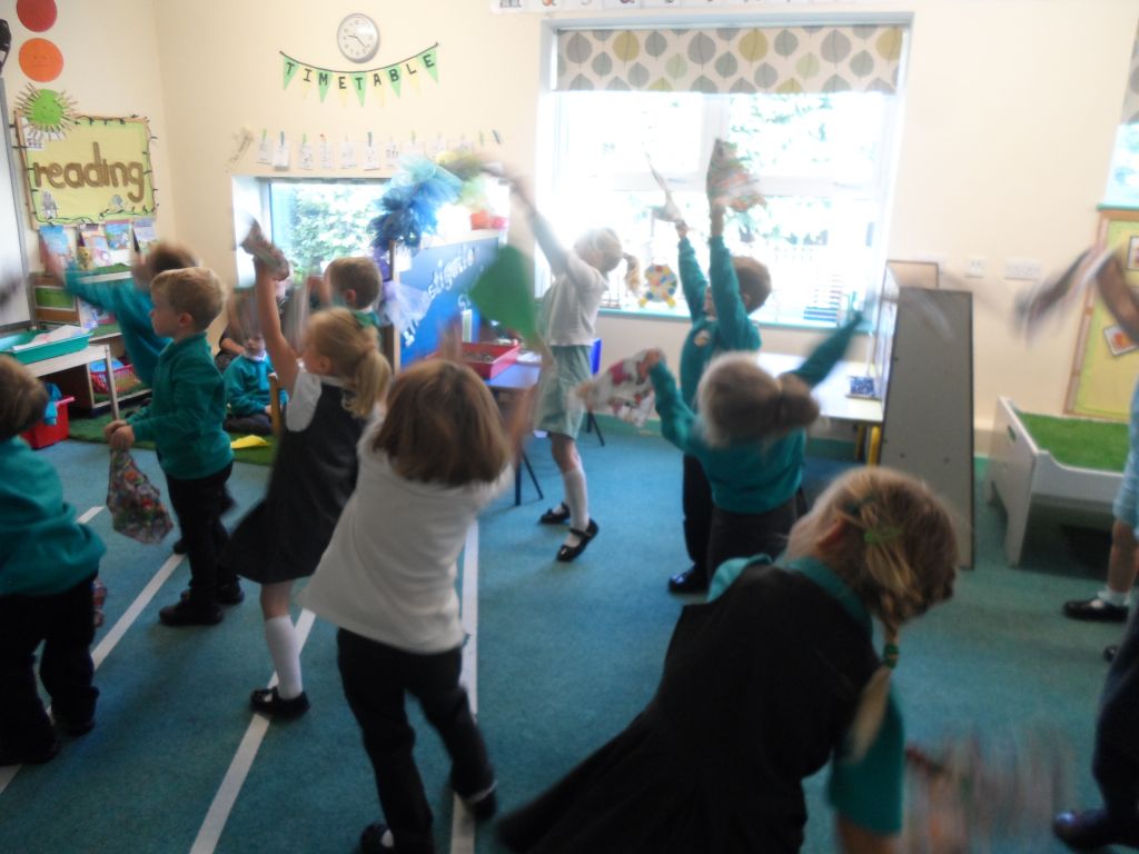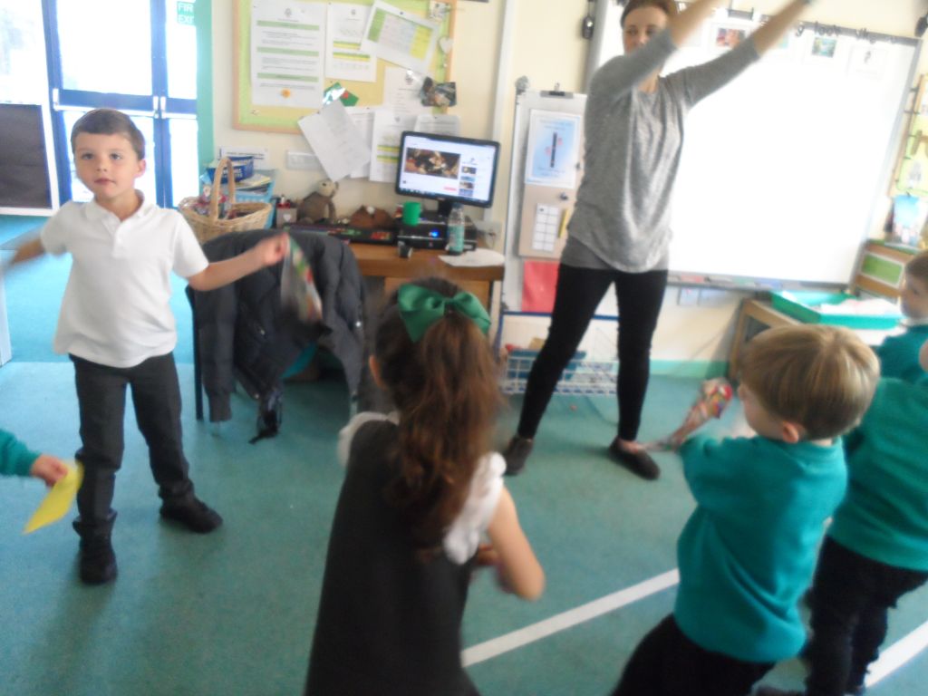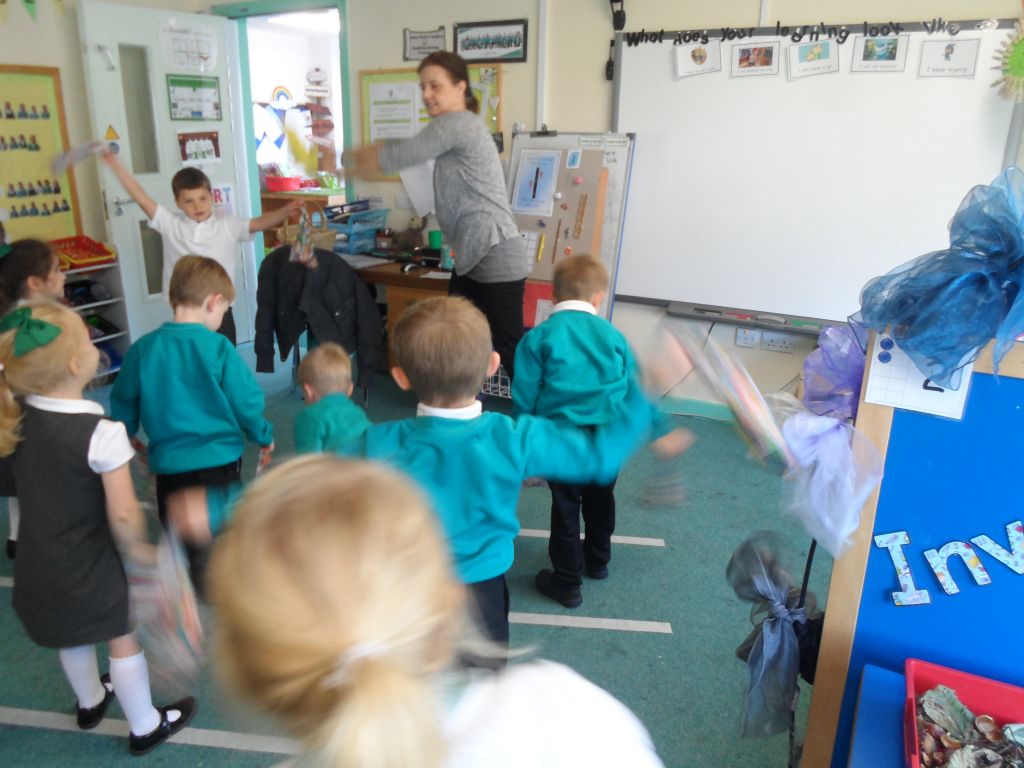 We have really been enjoying our Squiggle whilst you Wiggle sessions. Each morning we get 2 flappers and hold them in a pincer grip (our hands make a duck’s beak shape). Then whilst the music is playing we make big and small movements with our arms and wrists to represent different letter shapes.