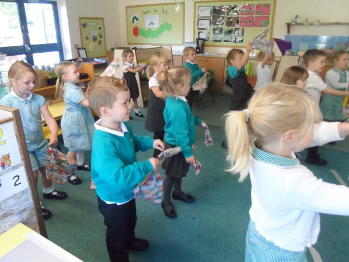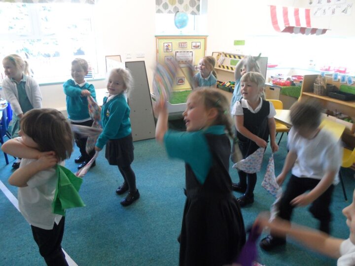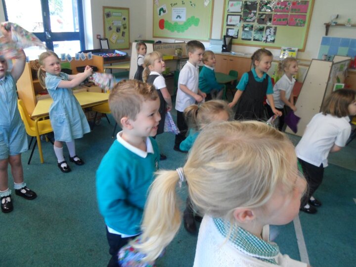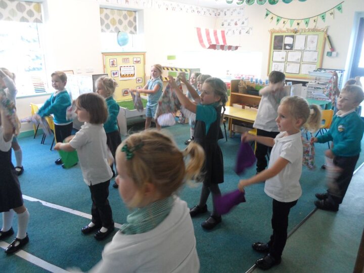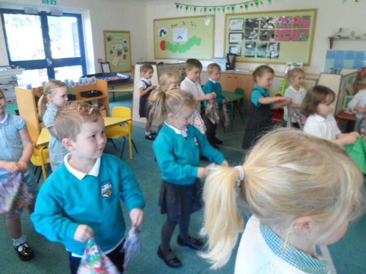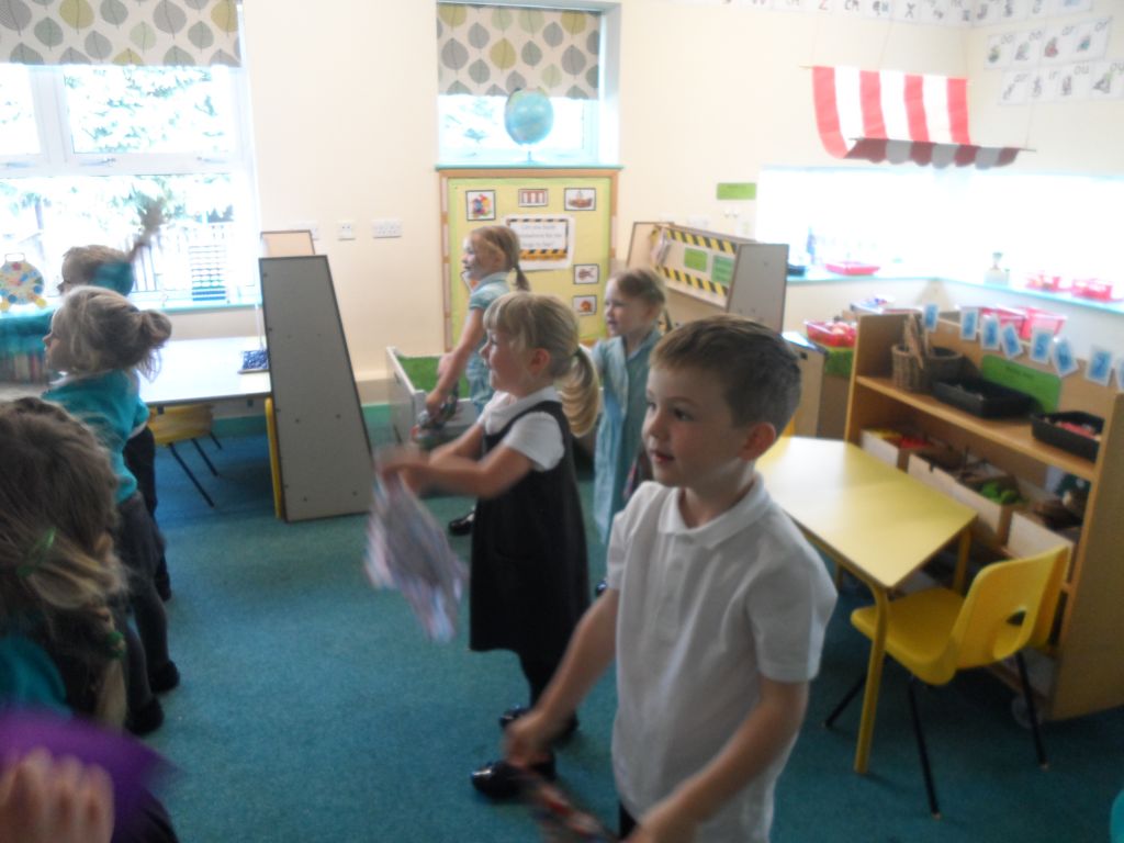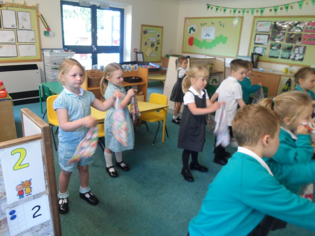 We have really been enjoying our Squiggle whilst you Wiggle sessions. Each morning we get 2 flappers and hold them in a pincer grip (our hands make a duck’s beak shape). Then whilst the music is playing we make big and small movements with our arms and wrists to represent different letter shapes.