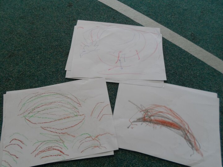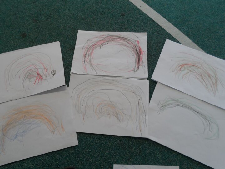 After we made the shapes using the flappers we repeated the movements using crayons. We managed to produce some fantastic arch shapes using our pincer grips.