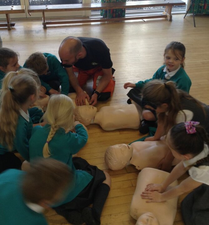 Along with 25,000 children in the UK, our class were involved in the ‘Restart a heart day’. Today the children learnt how to save someone’s life using CPR and a defibrillator, which we now have in school! We learnt how to ring for an emergency, apply CPR and how to find a defibrillator in the village.