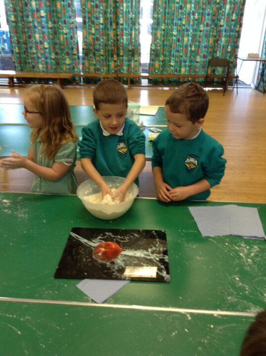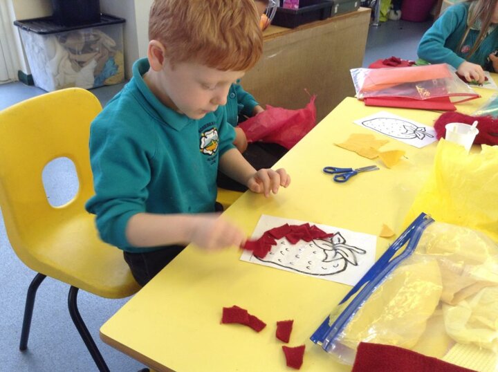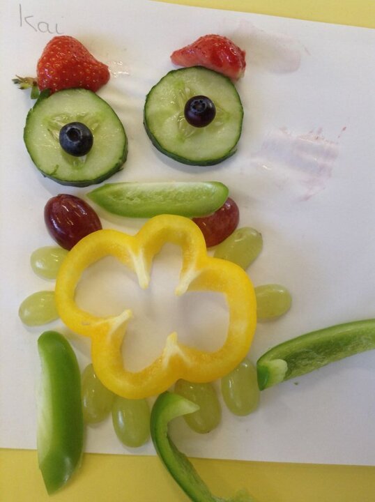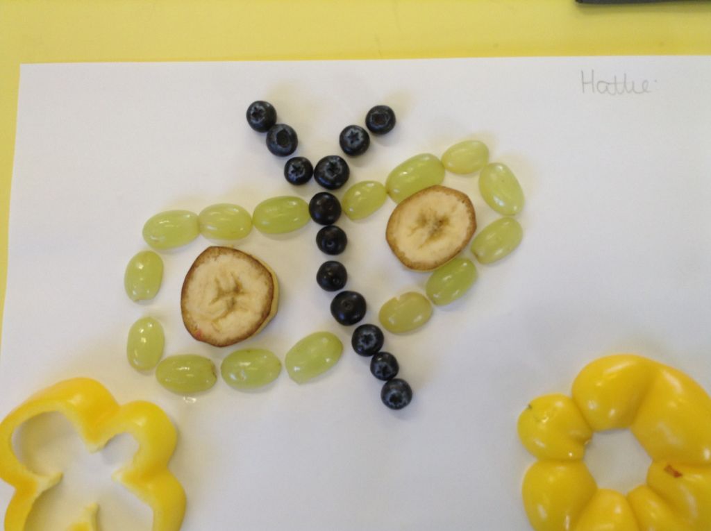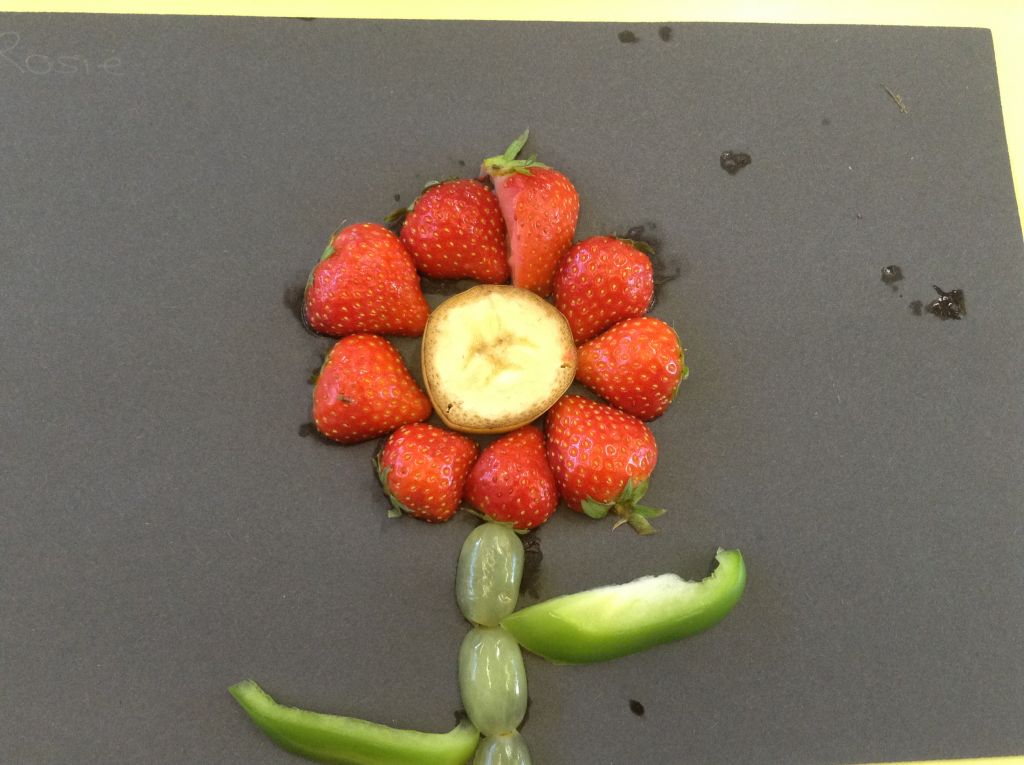 Today, saw the children baking bread rolls, making transient artwork using a variety of fruits and vegetables and using different textured materials to make collages of fruit.