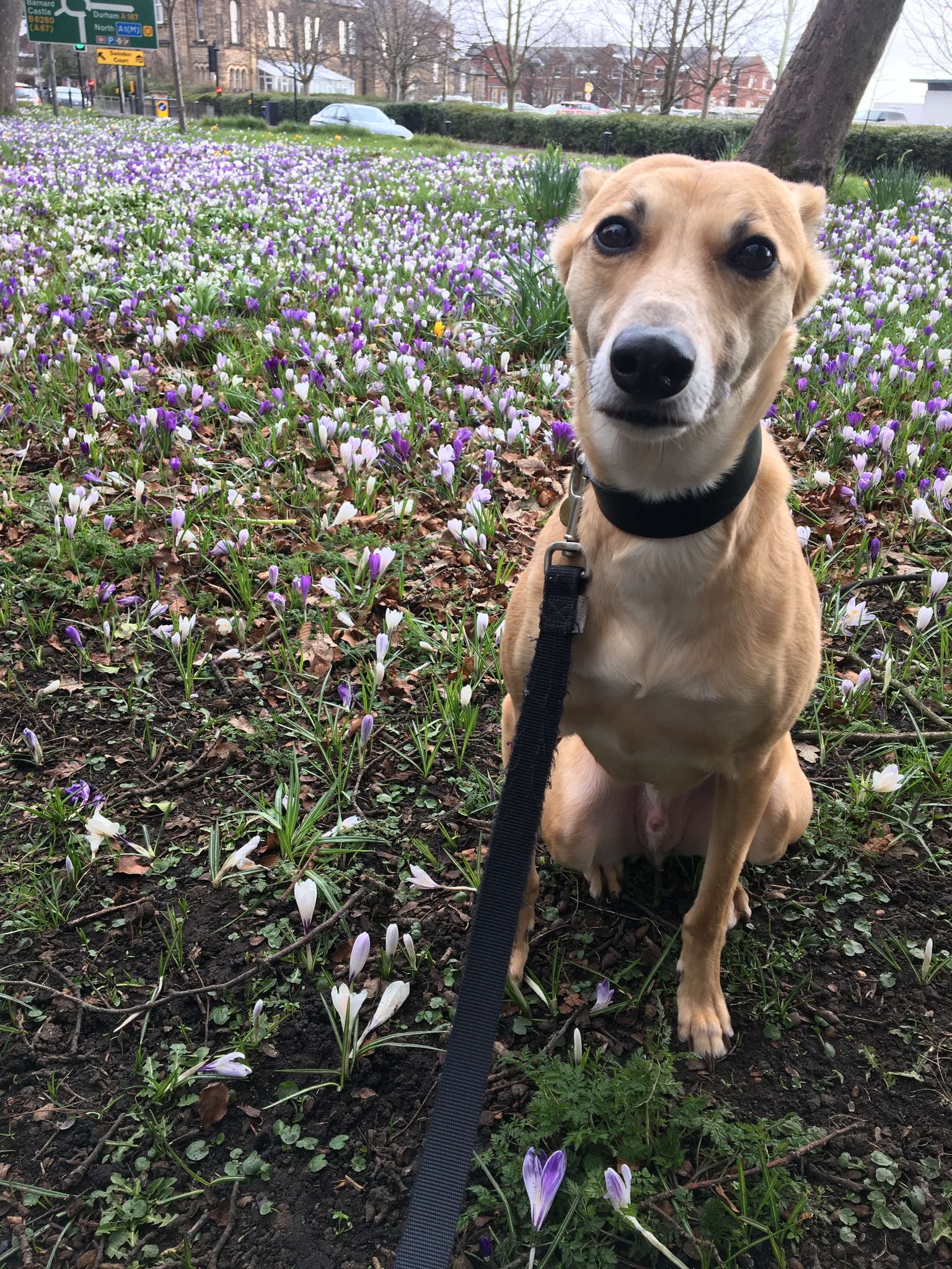 I love going for walks. My two-legged likes the flowers and trees. I like to shout at squirrels and search for street snacks.