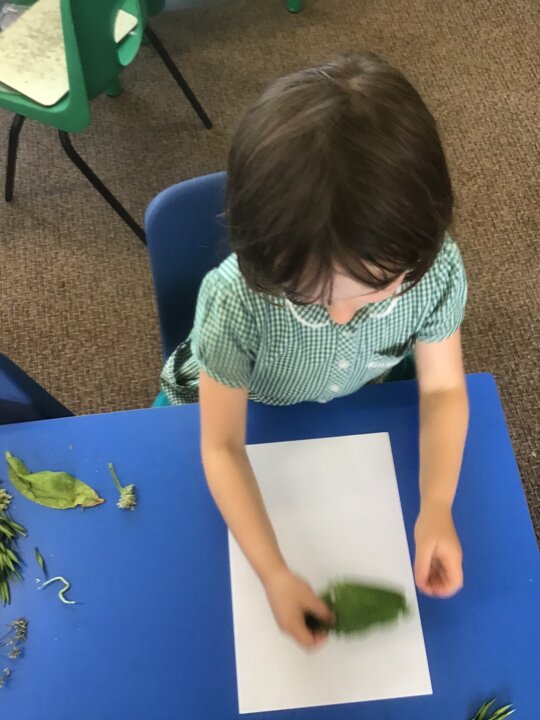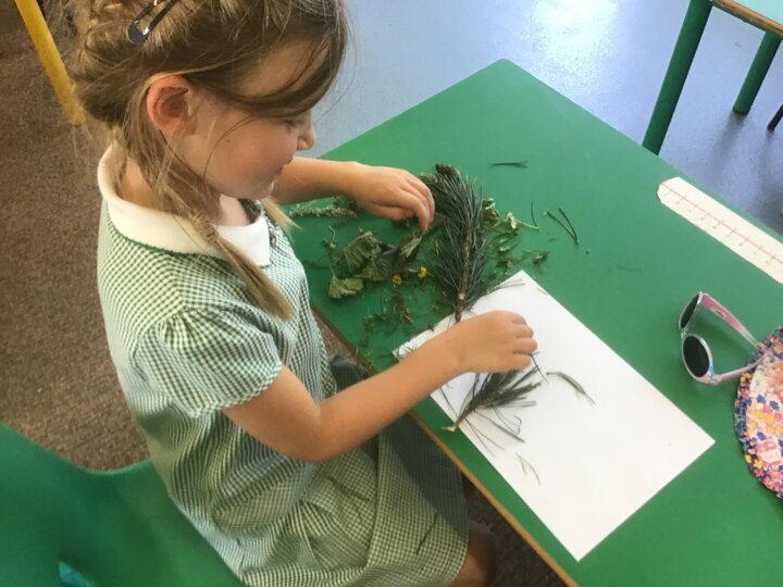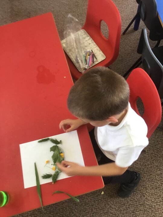 The children had lots of fun creating their own pieces of nature artwork. They collected lots of different leaves, twigs, flowers and acorns to create their artwork