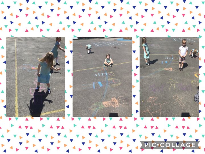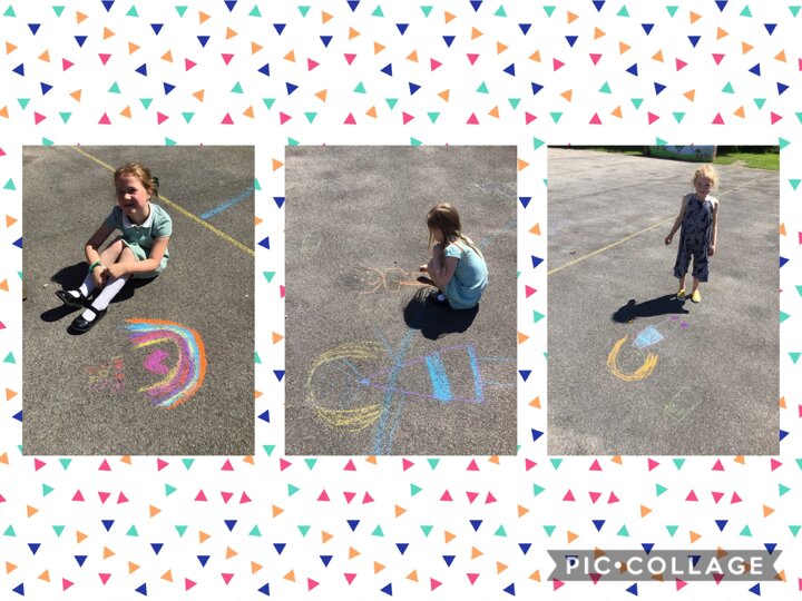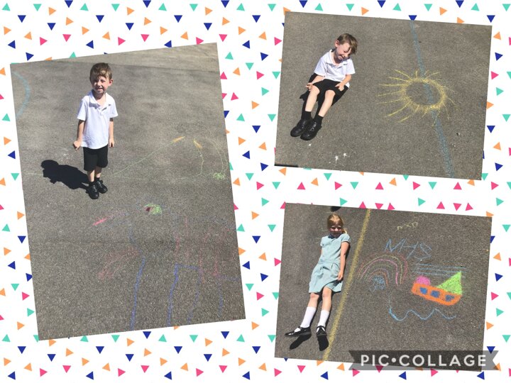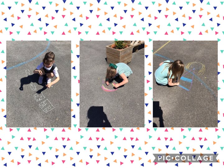 We have also been outside to create some fabulous chalk artwork! We had rainbows, city skylines, families, pets, and many more super, creative ideas! Well done everyone!