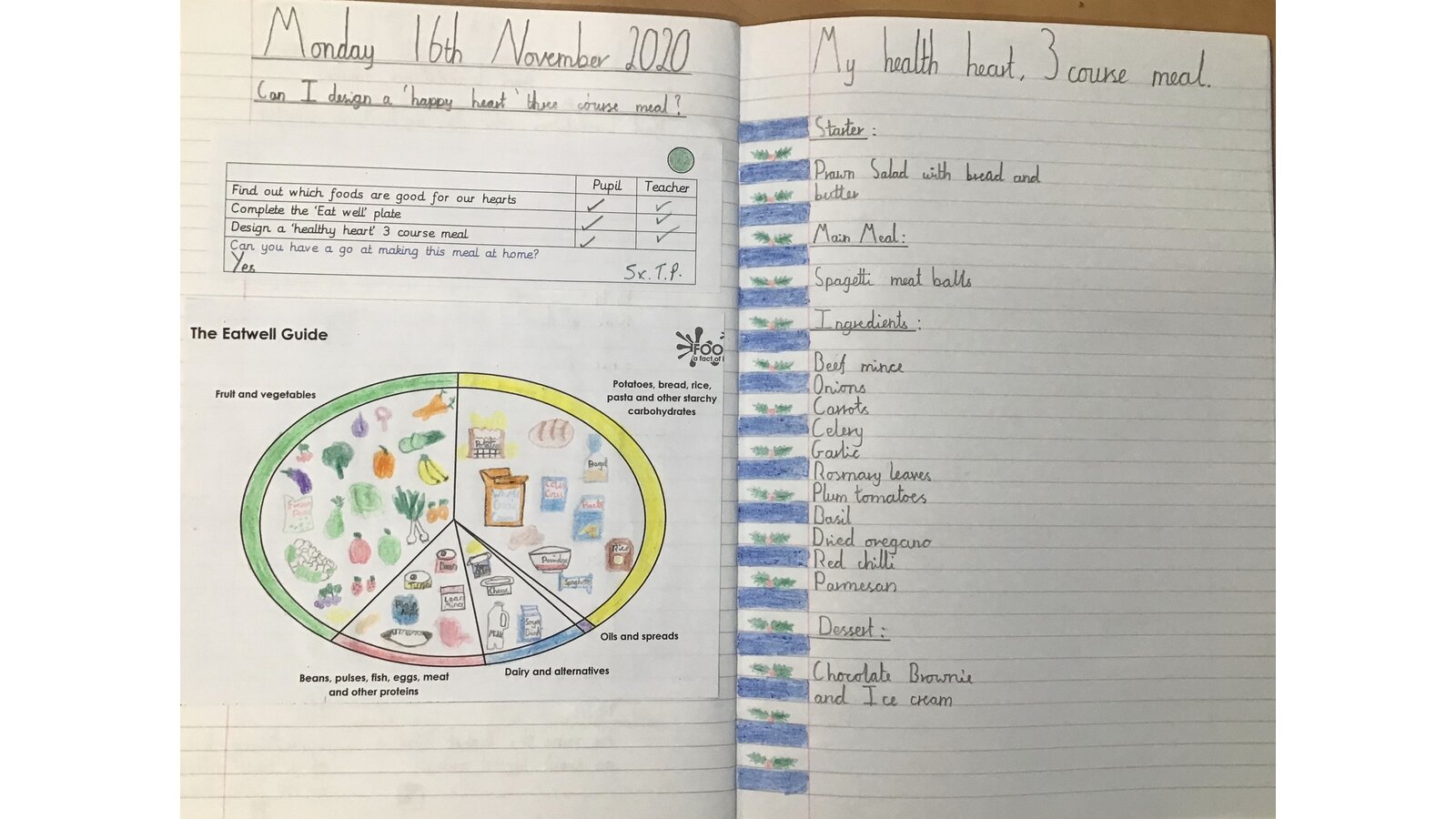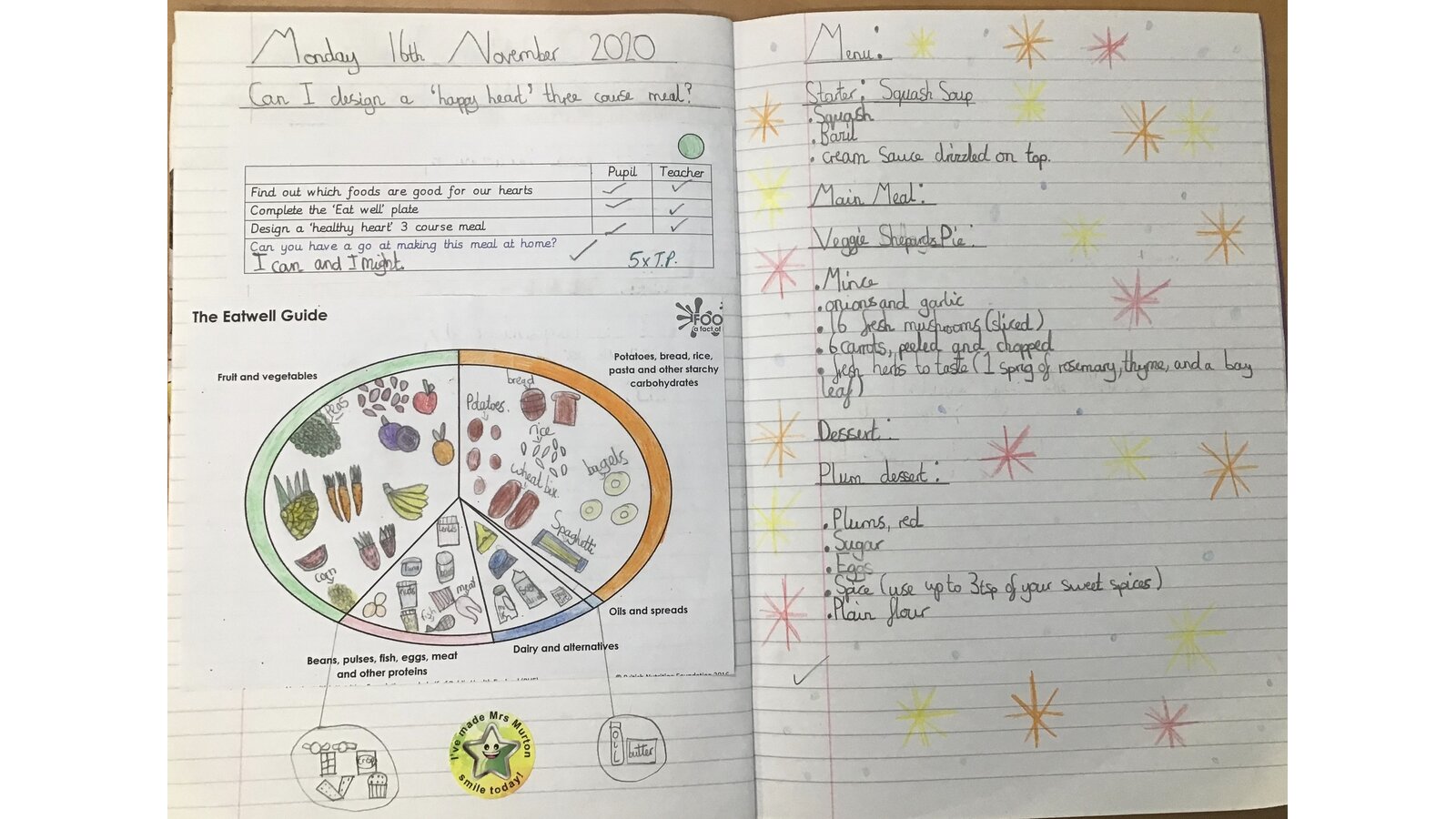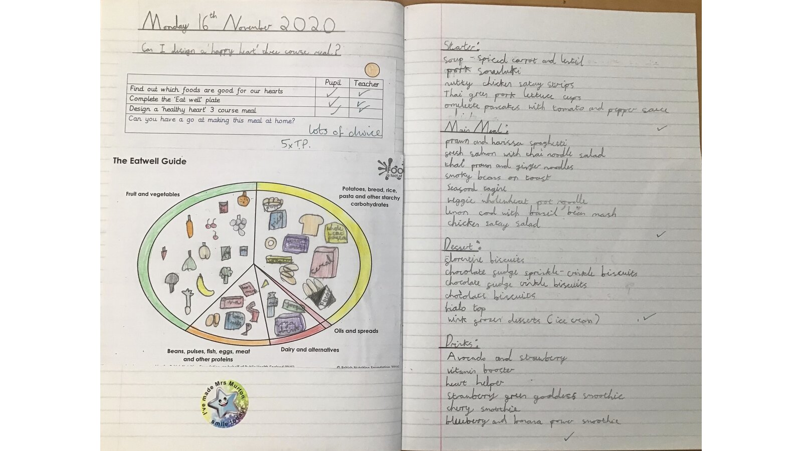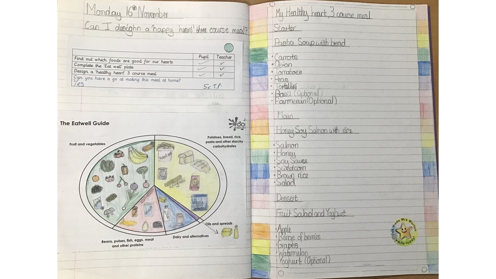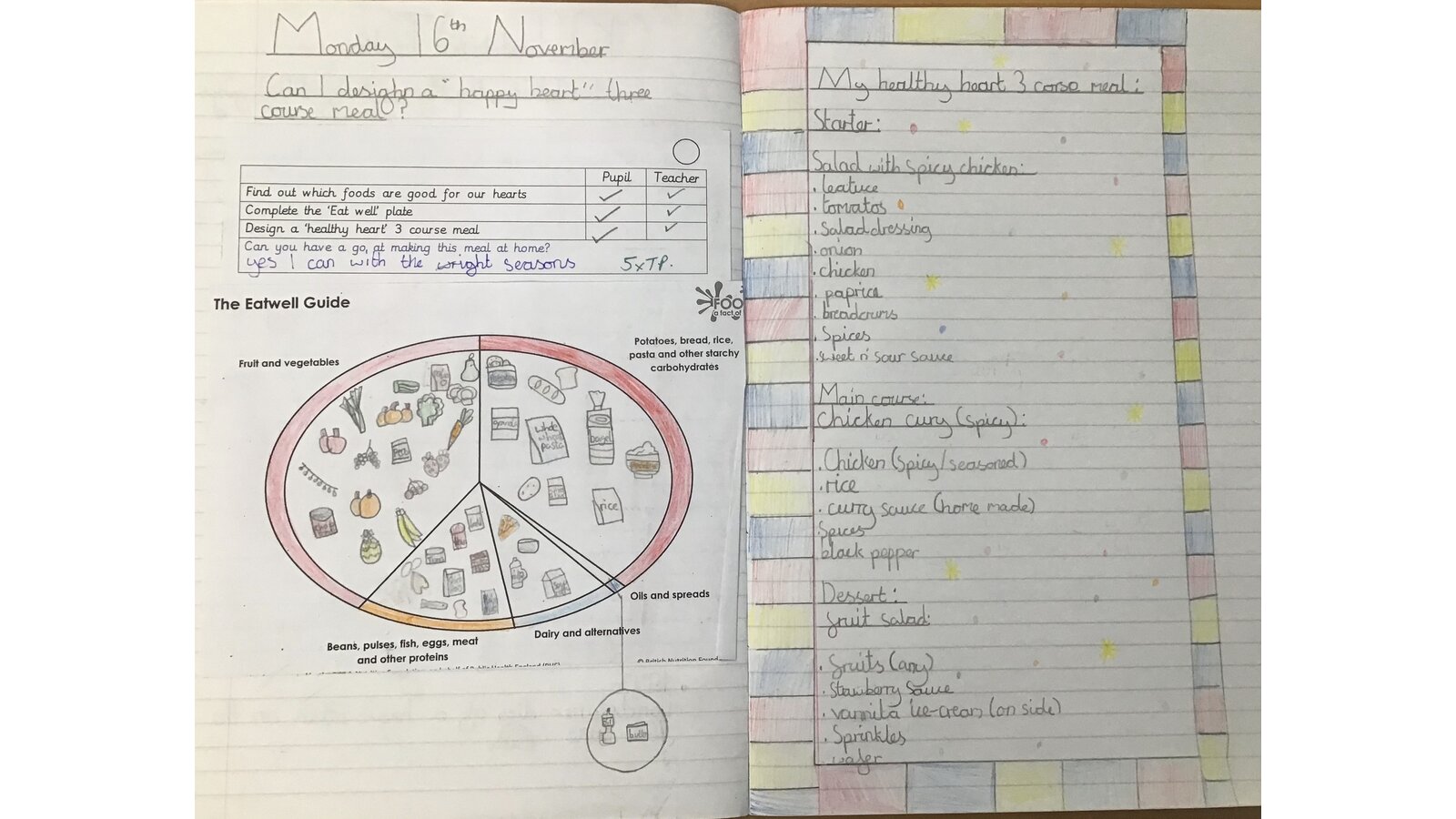 This week we looked at the foods we need in order to have a balanced diet. Eating healthily helps us to have a healthy heart so we researched healthy meals and devised some delicious three course meals. The children are now tasked with having a go at making those meals. Mmmm - delicious!