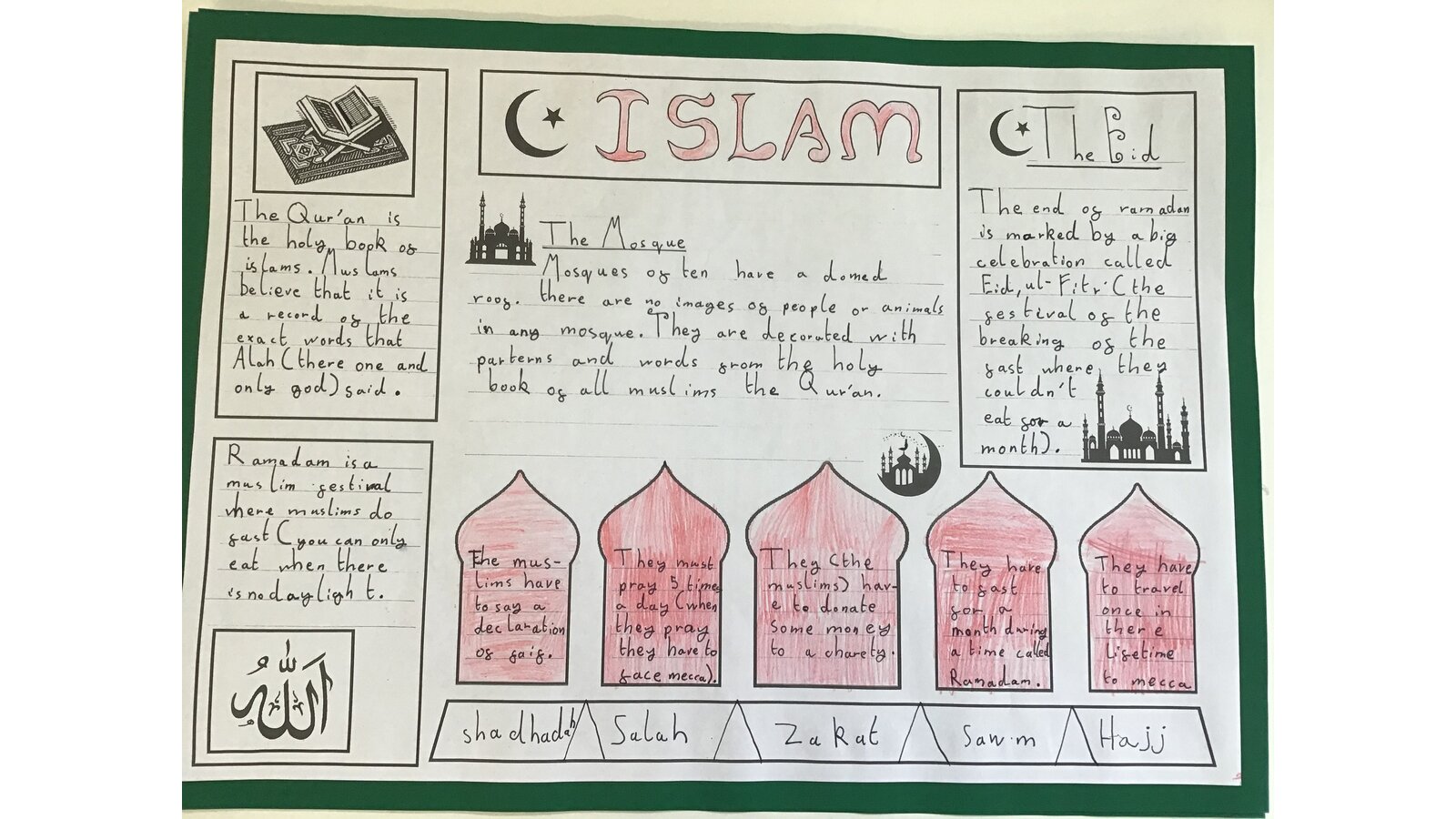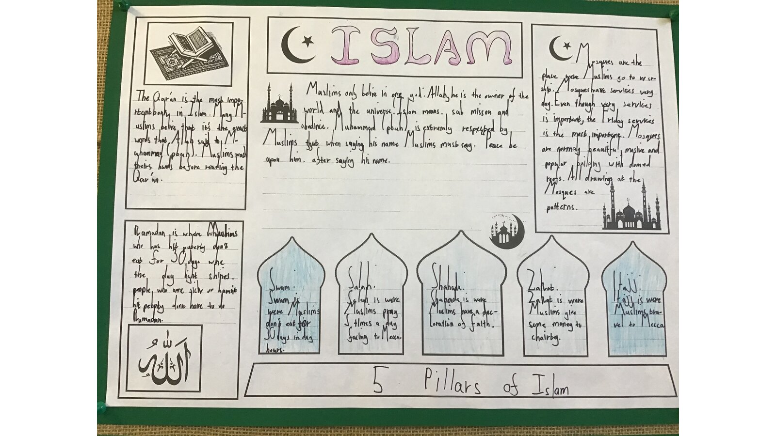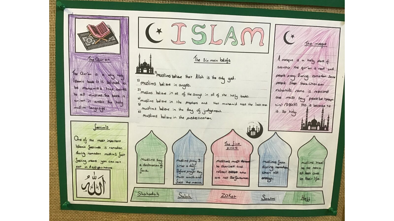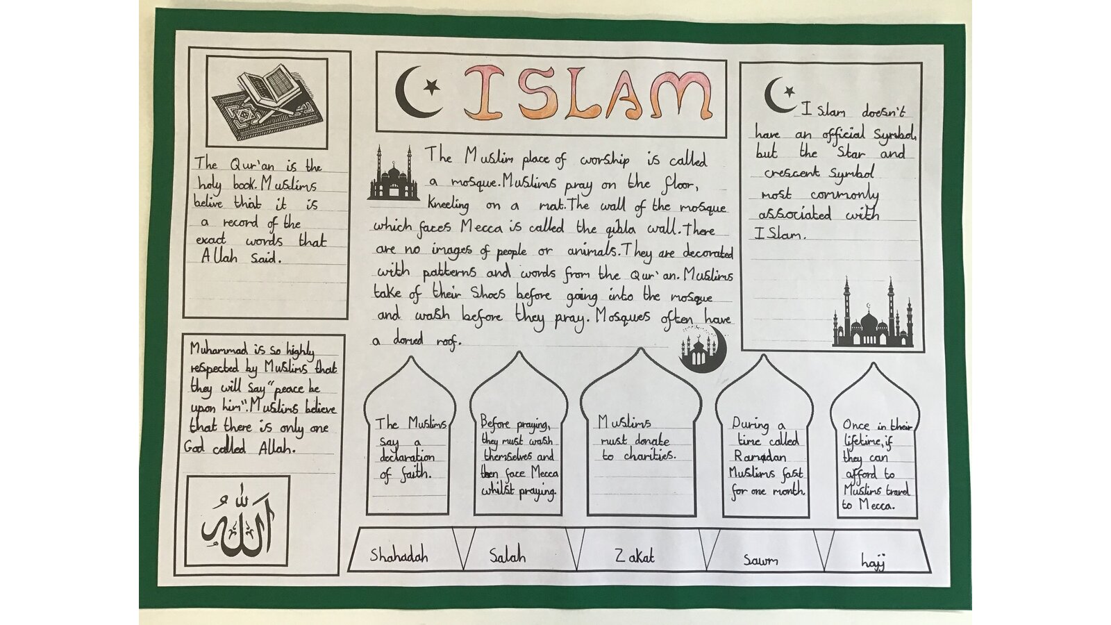 This week for Culture Week, we are focusing on Islam. The children have created some wonderful information sheets after they had learnt all about where they worship, what the 5 pillars of Islam are and what their main beliefs are.