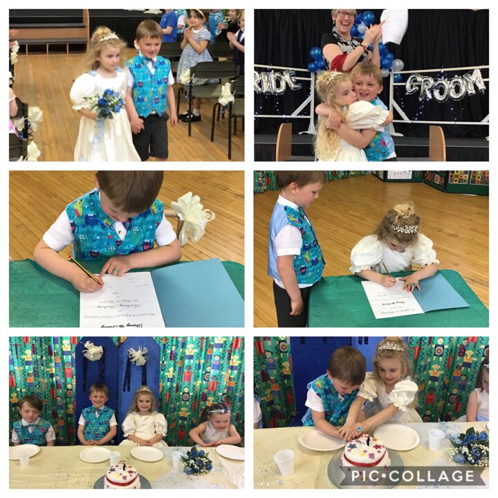 Today we had our very own 'Pretend' wedding day. Our bride and groom invited us all to share in their very special day where they promised to be the best of friends for ever.
