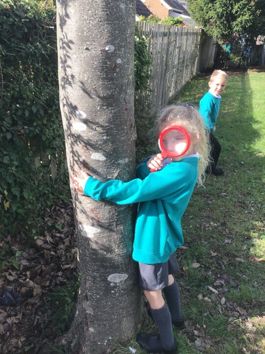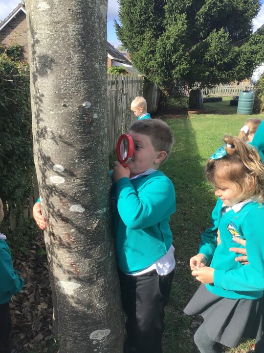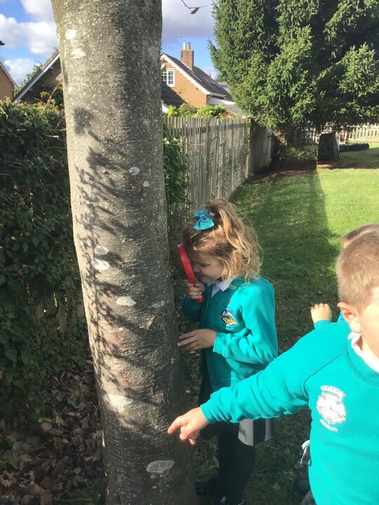 In our topic this week, we have been exploring trees to see what they look and feel like. All of the children have made a booklet about their tree and have enjoyed being outside.
