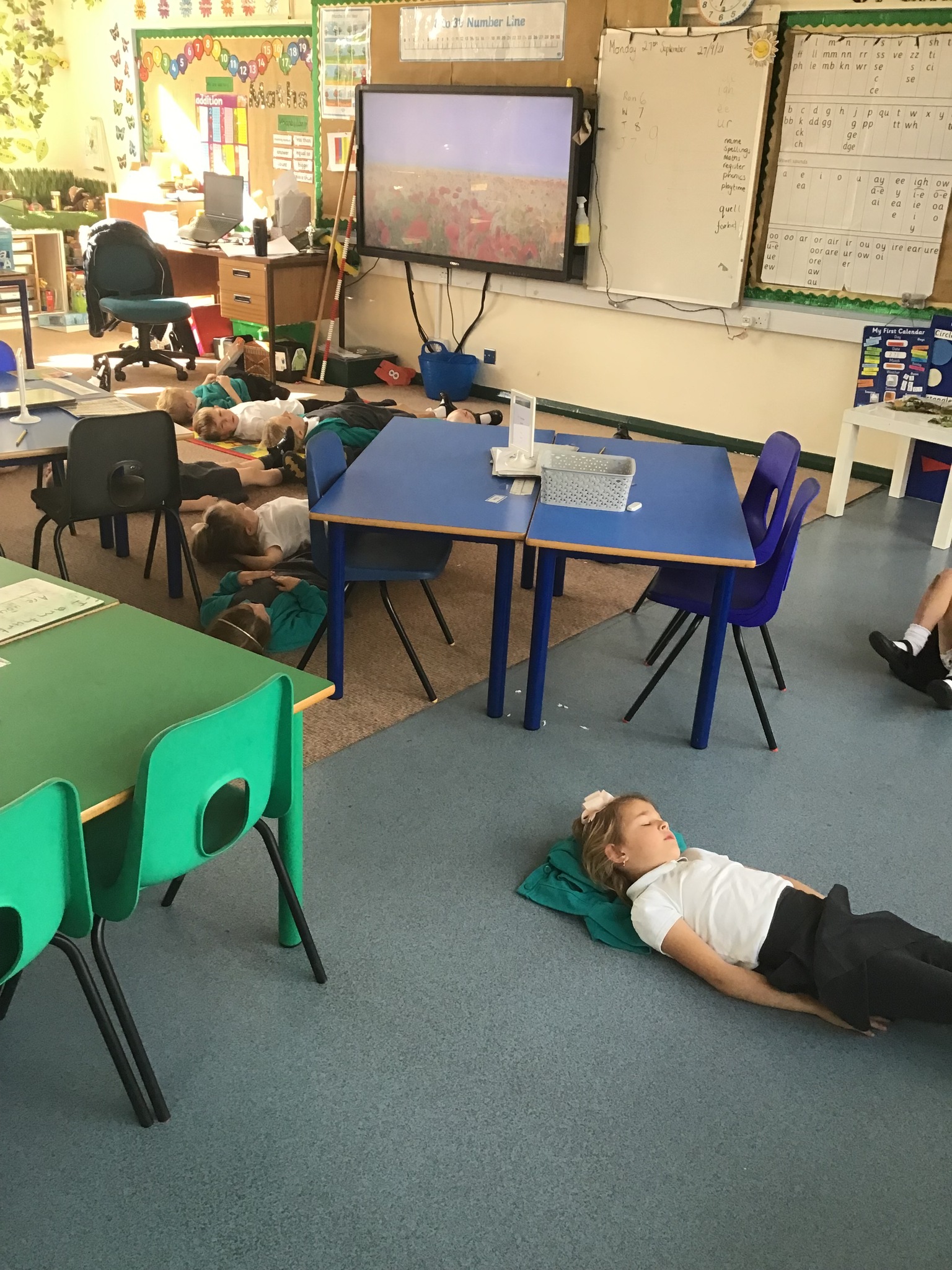We work so hard in year 1 and at the end of the day, we do our relaxing time. The children spend 5 minutes listening to relaxing music. As they close their eyes, they breath gently and think lovely thoughts. They really do enjoy this 'chill out' time and look forward to it each day.