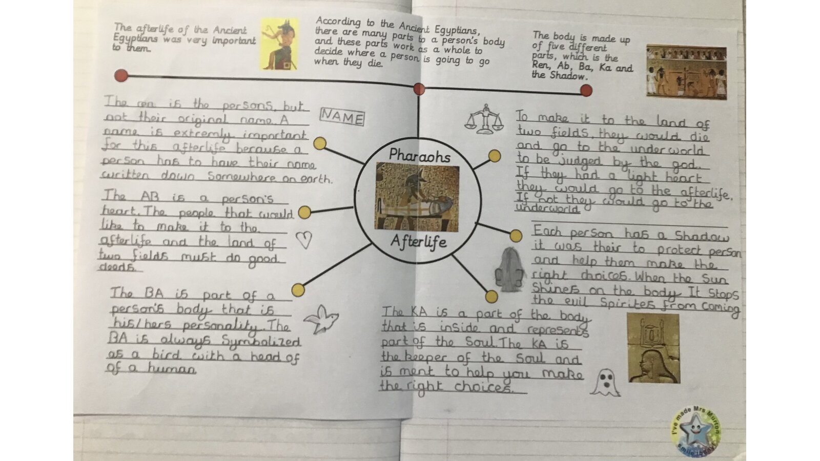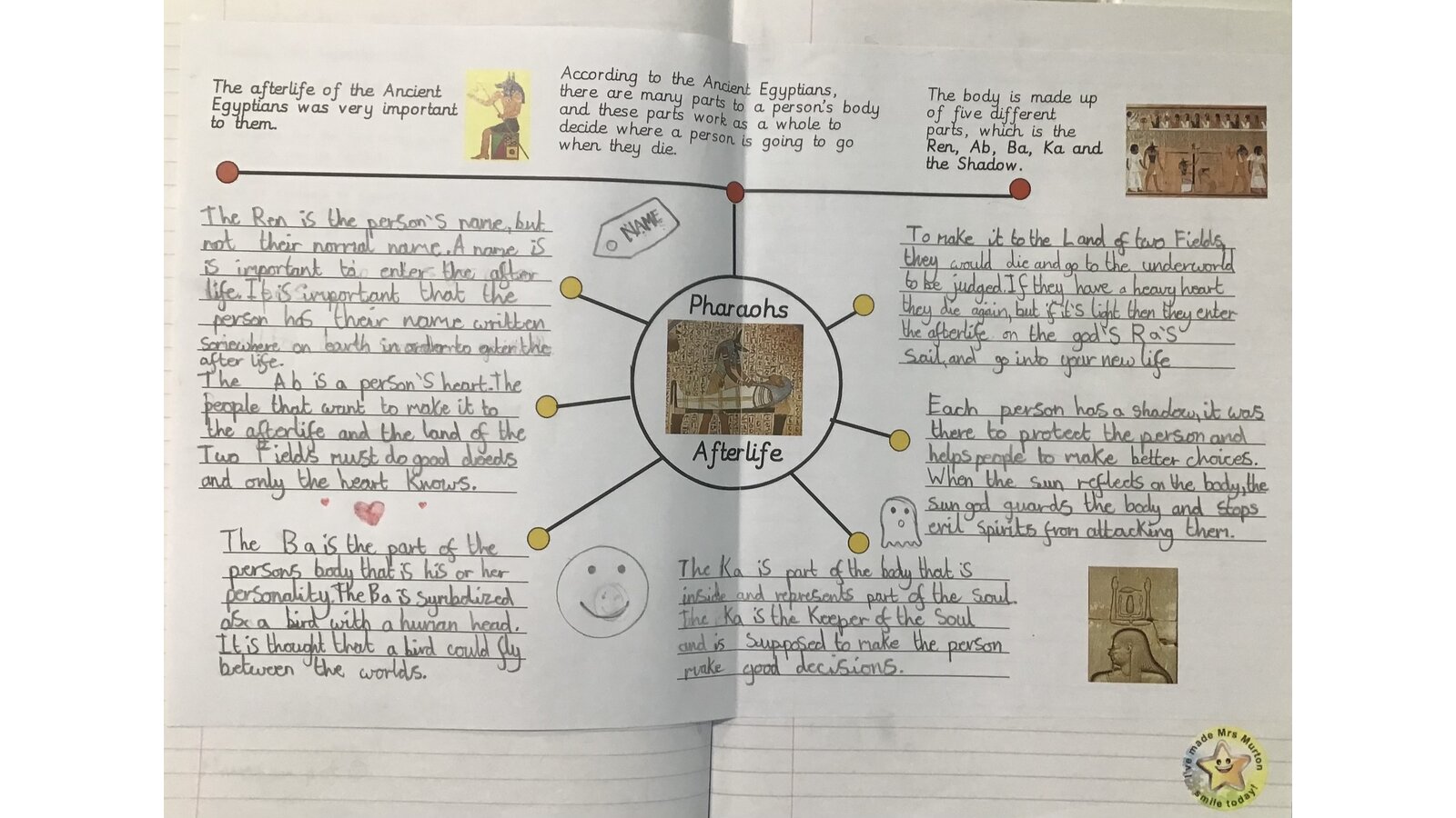 This week the children created a graphic organiser to help them learn about how the Ancient Egyptians prepared for the afterlife. They were able to recall lots of information and their work was beautiful!