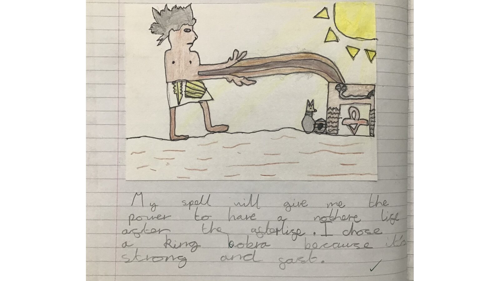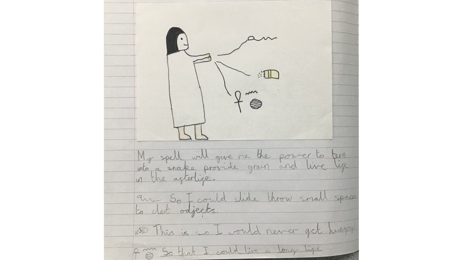 They also found out about The Book of the Dead and how the spells prepare for the afterlife. The children had a go at drawing their own spells and thinking about powers which would be useful.