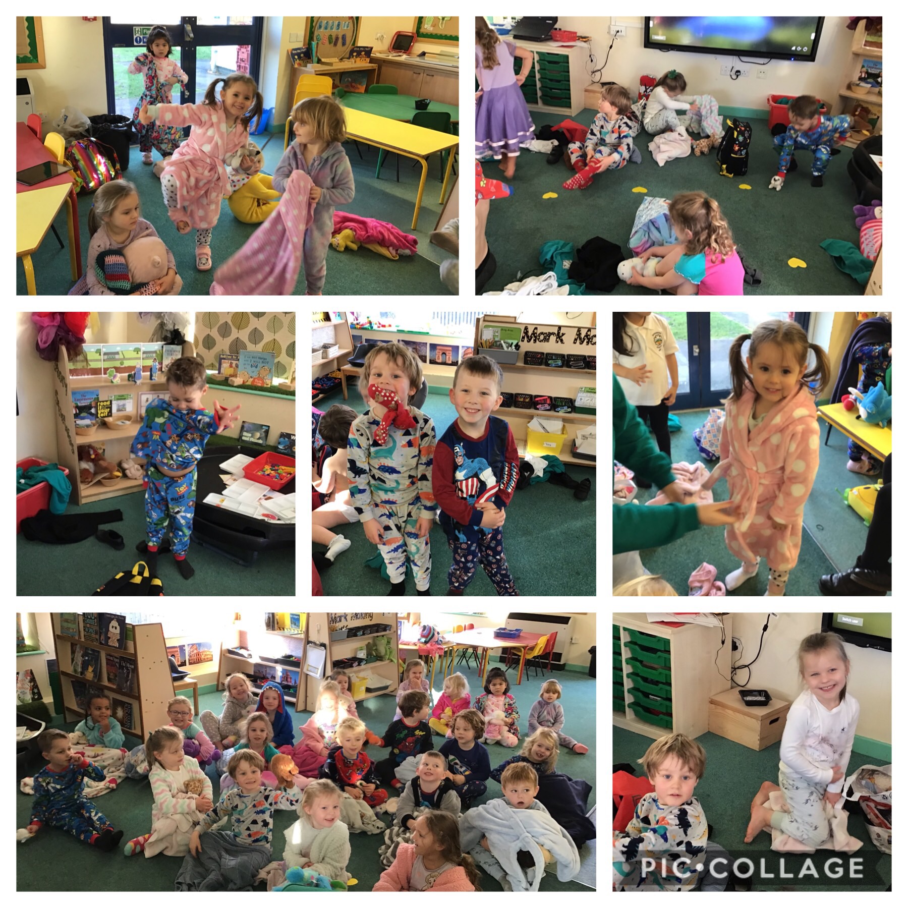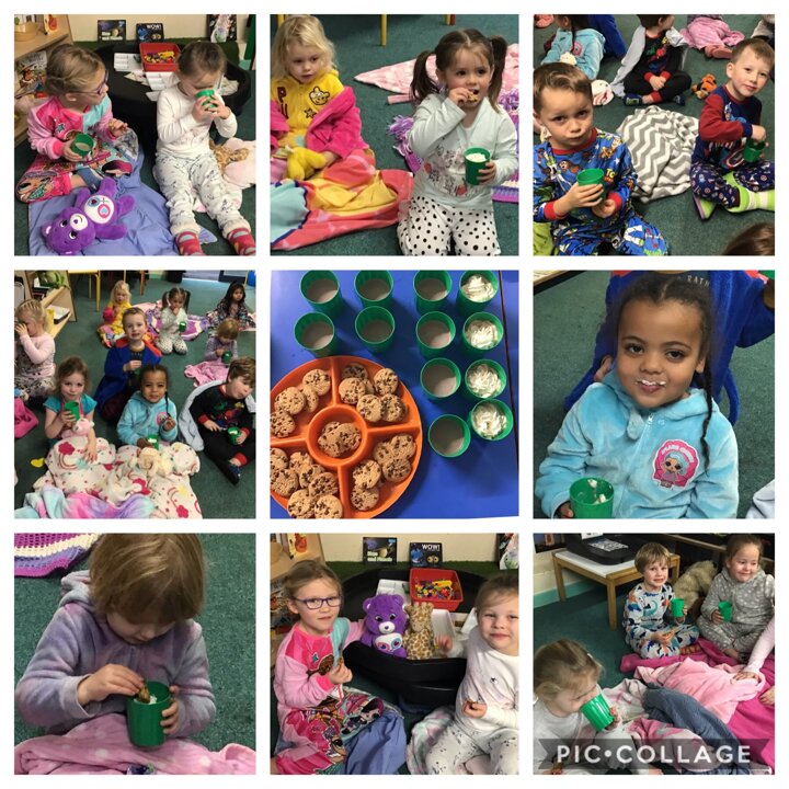 To finish off our night and day topic, we joined with reception and had a pyjama party. We started off the afternoon by talking about what we need for bed. We got out our, pyjamas, dressing gowns, teddies, blankets and slippers.