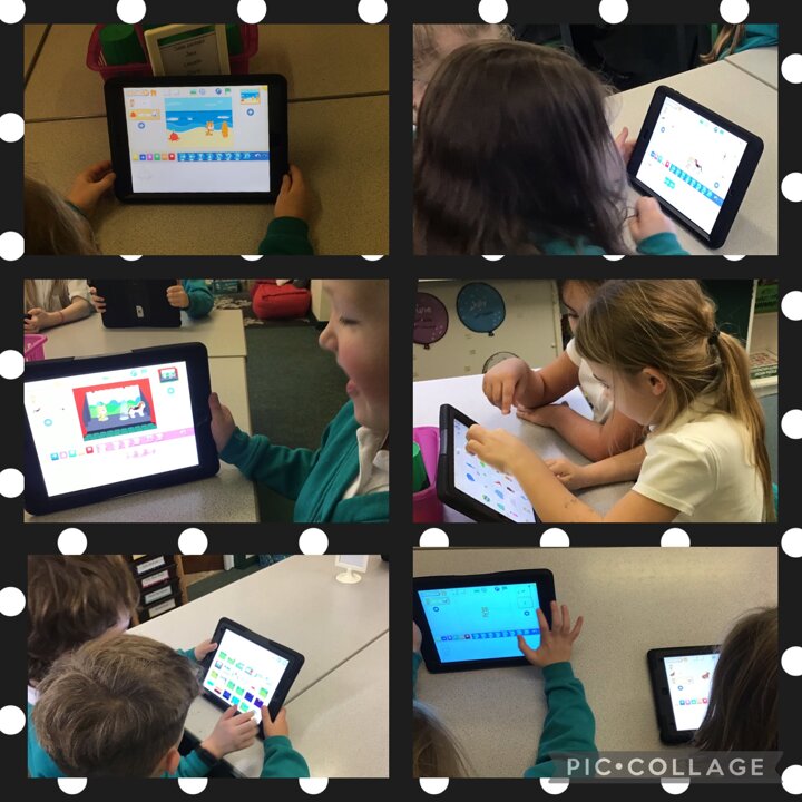 During ICT this half term, we are using Scratch Jr to learn how to code. In our first lesson this week, the children were experimenting changing characters, backgrounds and using instruction blocks to give commands. Gradually over the next few weeks, the children will develop core skills in coding to develop more complex sequences. Well done everyone!