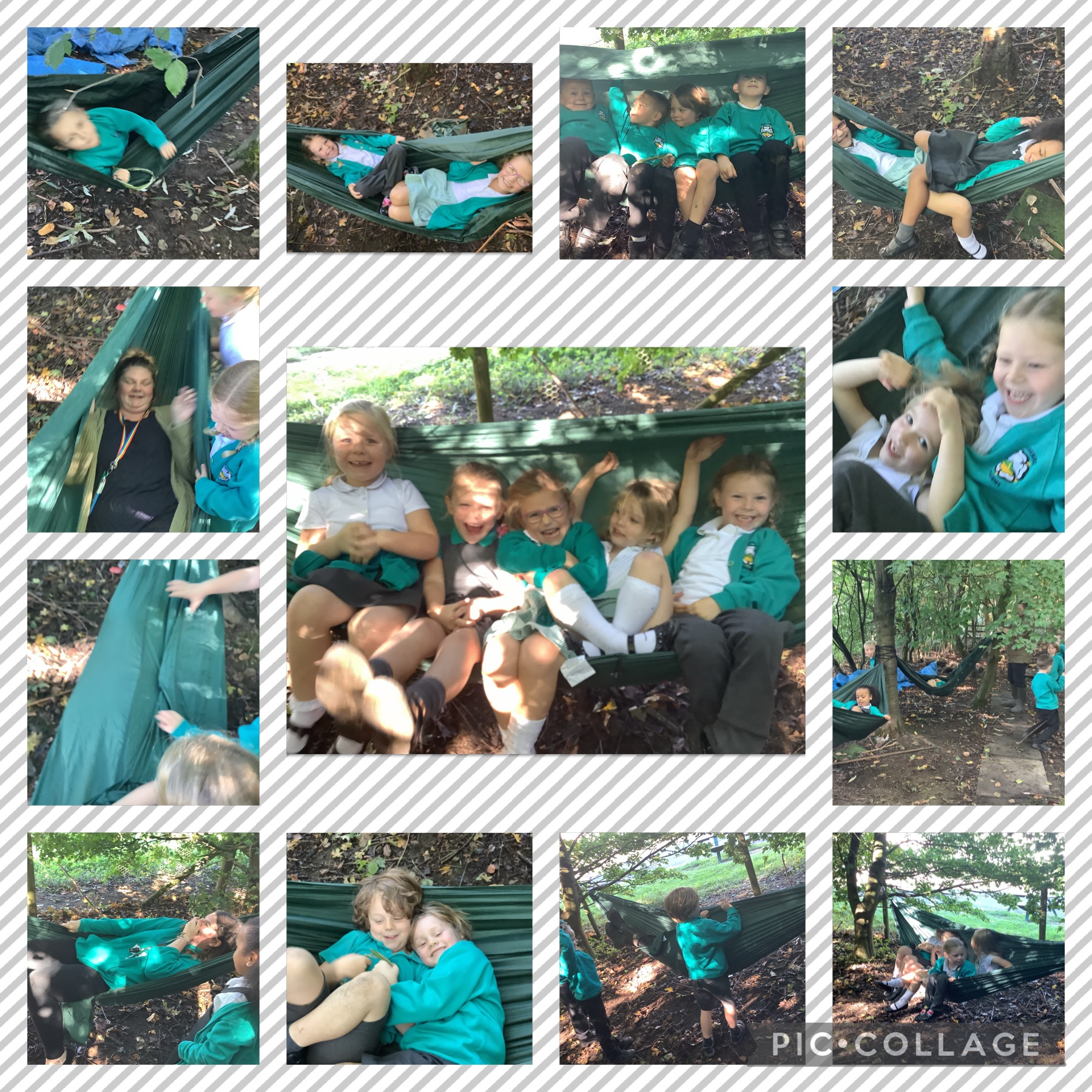REALtime has been fantastic this week. Mr Murton showed us how to make our very own games when outdoors. We used bits of willow and other objects we could find to make our game. We made an obstacle course, noughts and crosses, hook-a-circle, and bowling. Afterwards, Mr Murton tied hammocks to a tree. It was so much fun. Miss Berry and Miss Coopland were a bit scared getting in! |