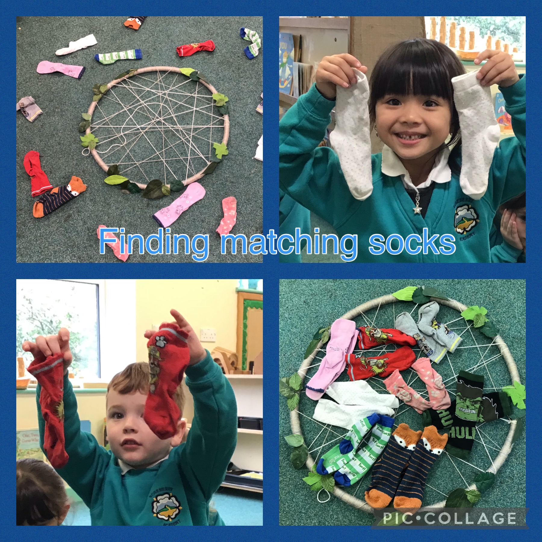 Today in Maths we explored Matching & Sorting. First we sorted the socks into pairs. Each sock had to look the same as the other sock for it to be a matching pair.