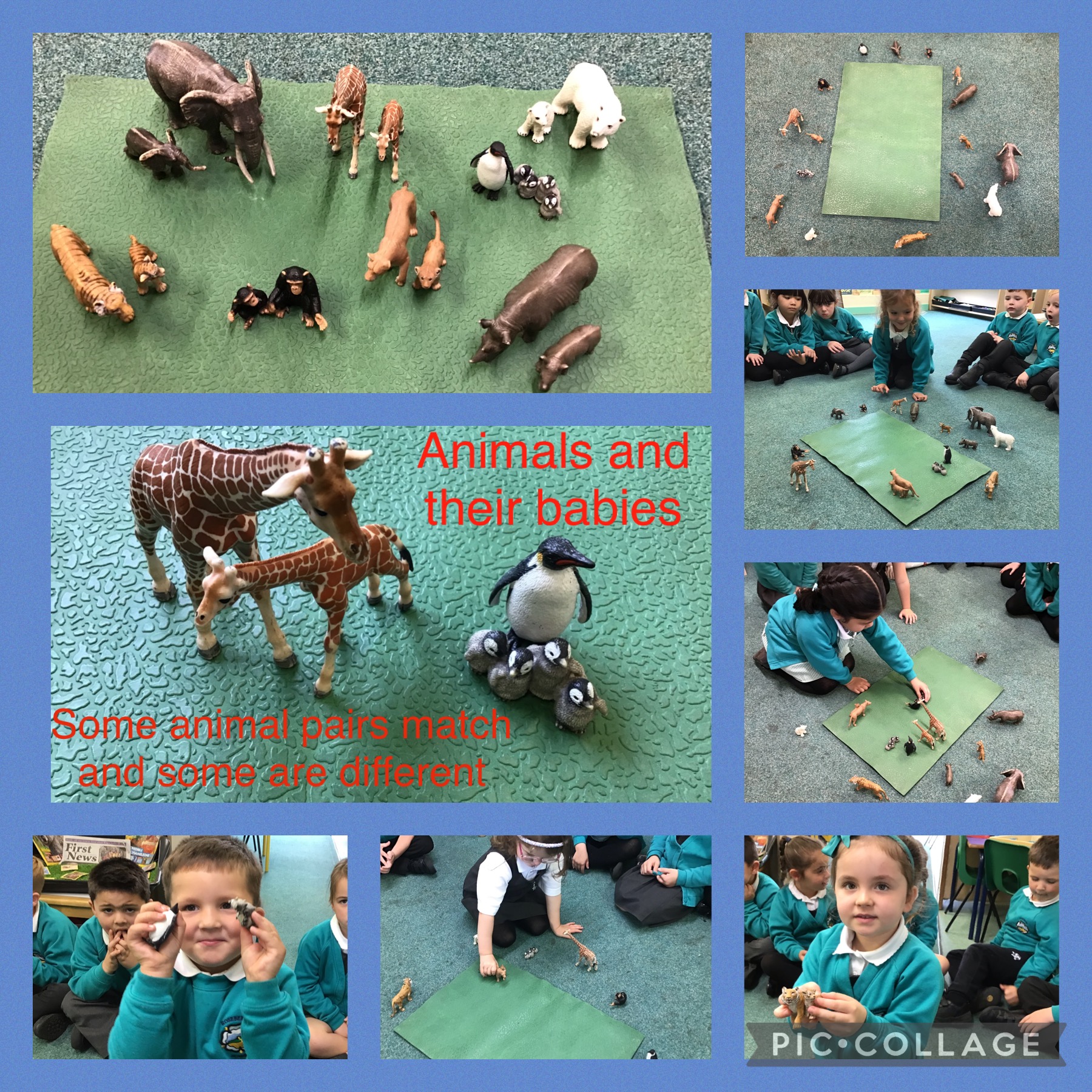 Next we sorted animals and we noticed that some baby animals don't look the same as their Mummy or Daddy.