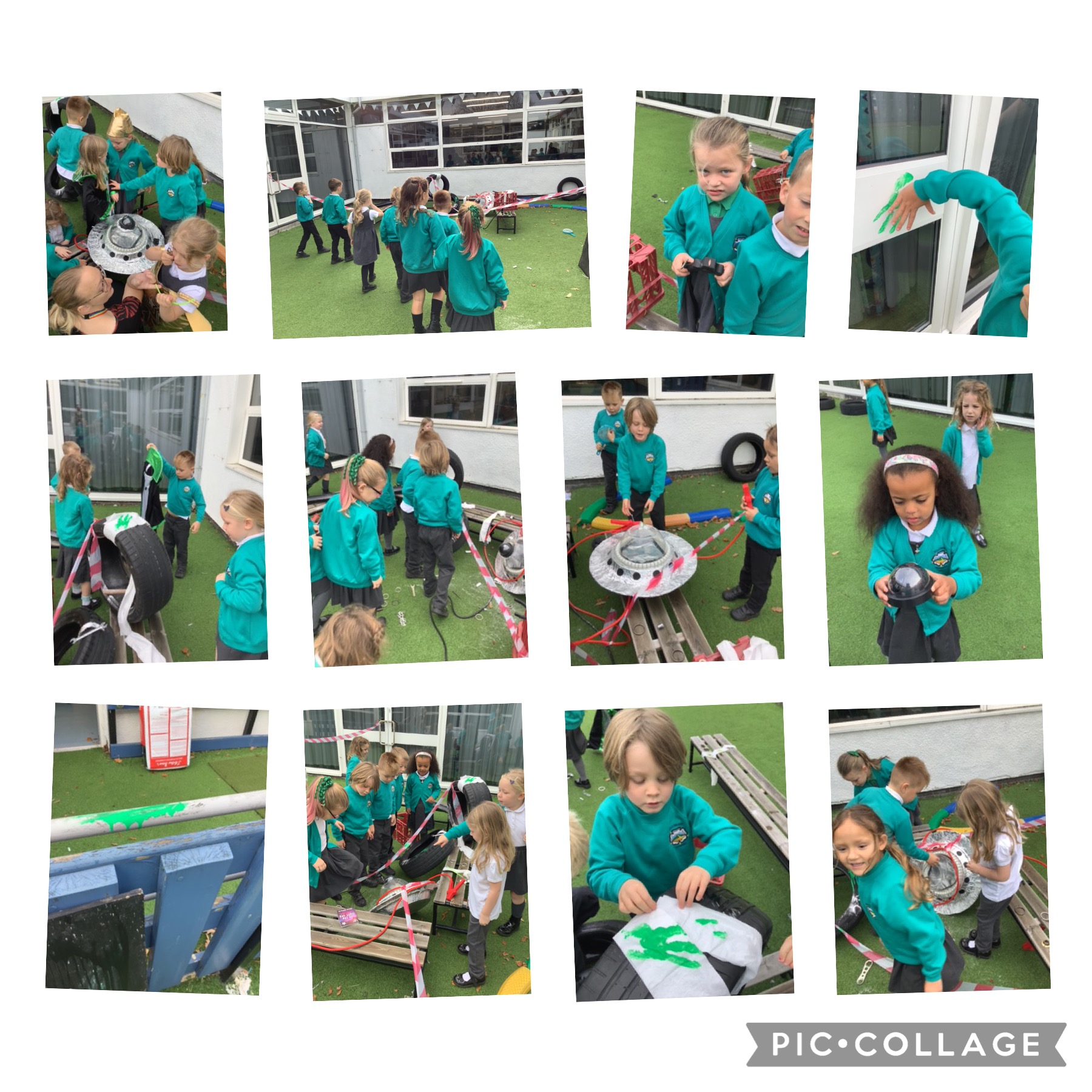 Oh no! Who has crashed into year 1 over the holidays? We arrived at school and there had been a dramatic crash in our outdoor area. We looked for clues and wrote an incident form. It was an ALIEN!
